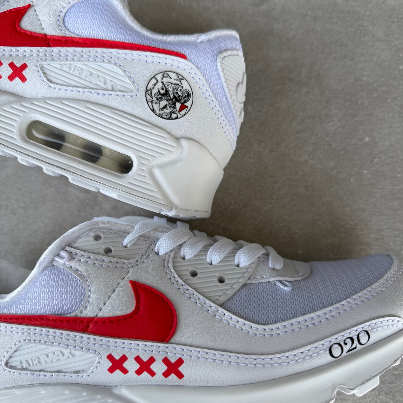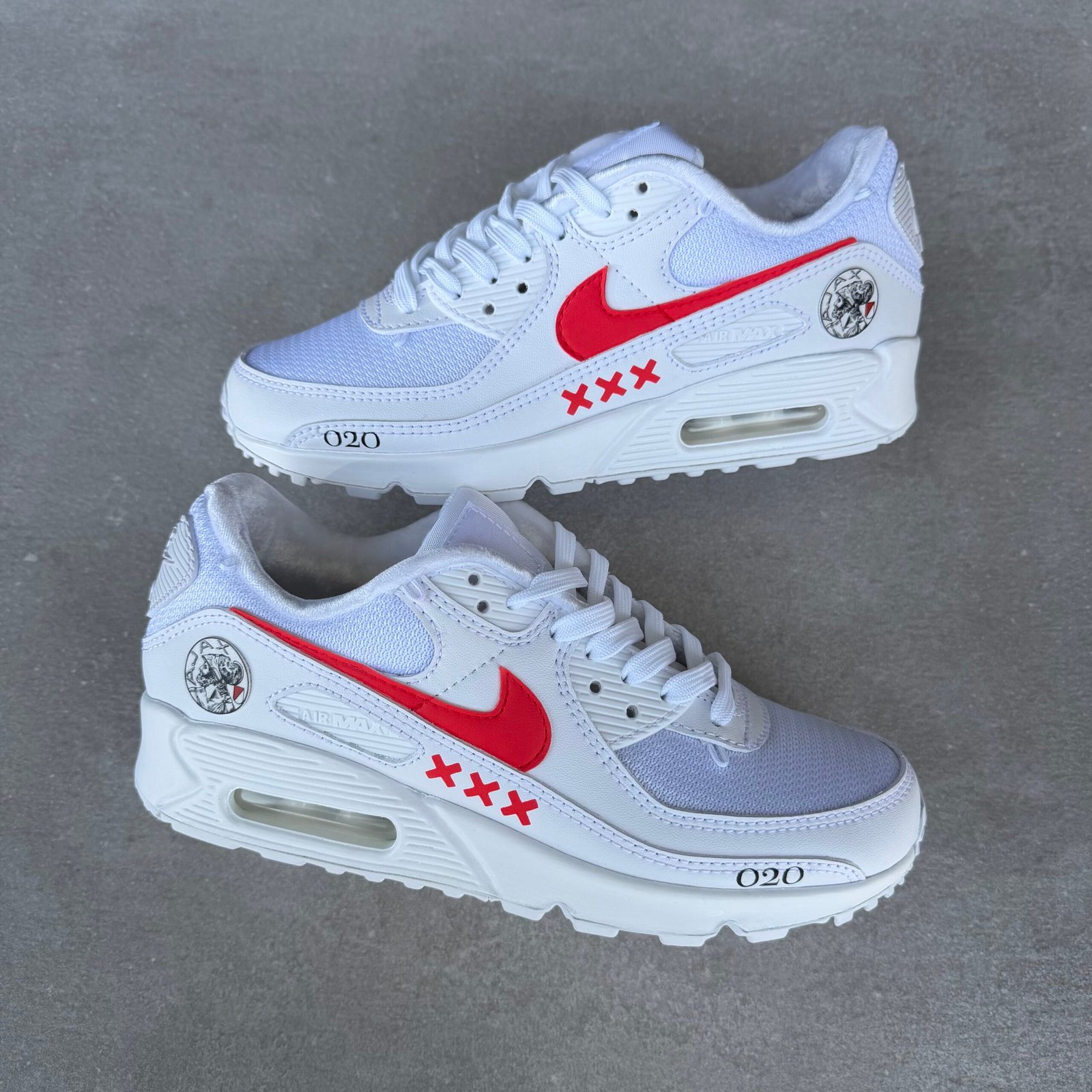 Custom Air Max 90 geïnspireerd door de Nederlandse voetbalclub, “Ajax Amsterdam”.