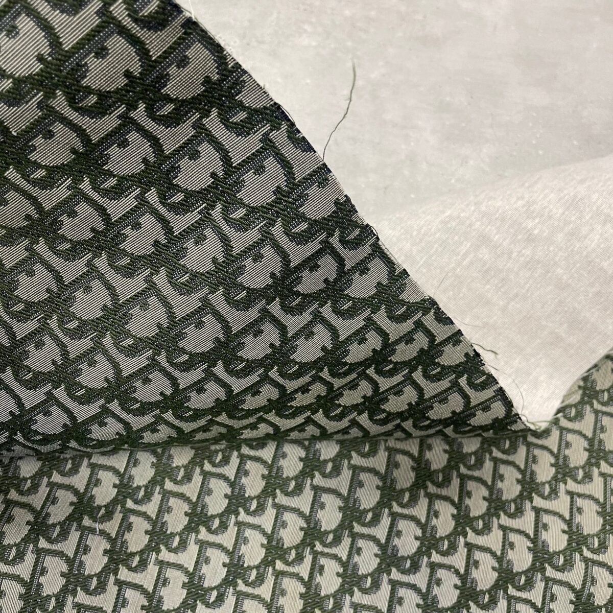Classic Christian D fabric with the olive green logo’s