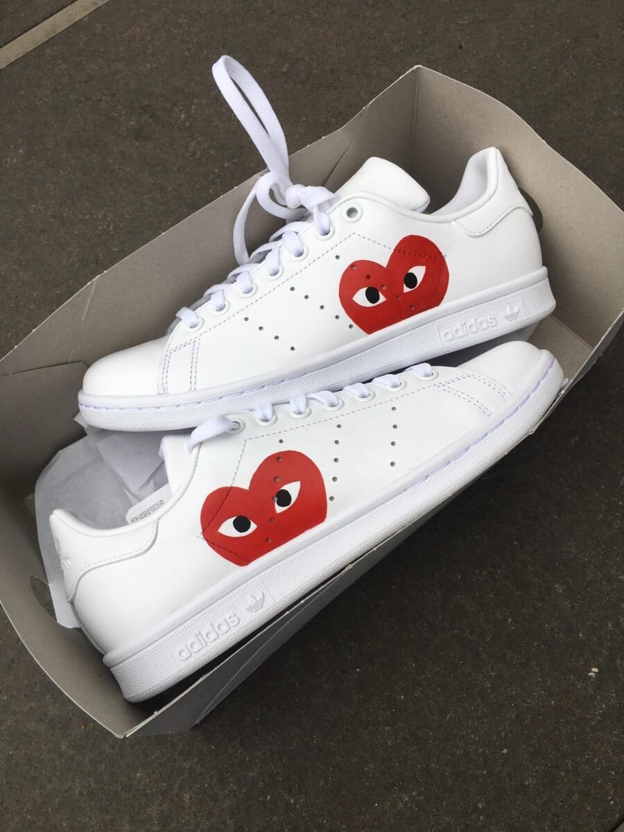 Custom Adidas Stan Smith x CDG. Painted with the best quality paint in the game. Scratch resistant and 100% waterproof