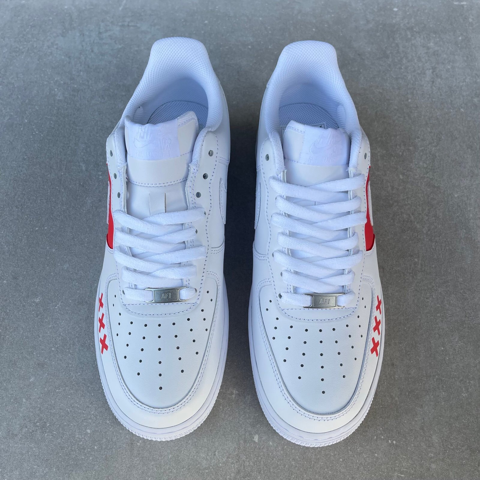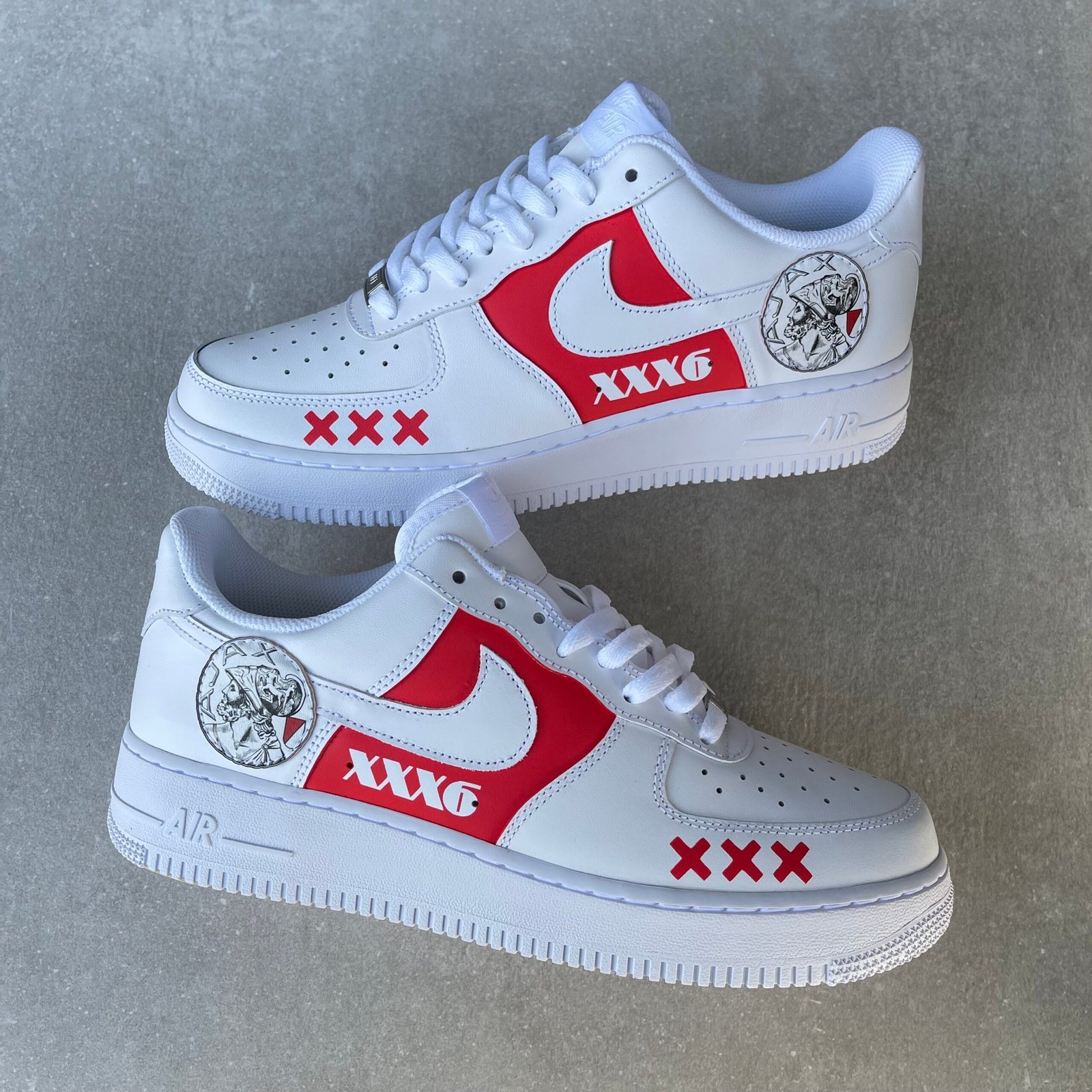 Custom AIR FORCE 1 volledig gecustomized in de style van Ajax Amsterdam met het oude klassieke logo! Deze zijn ook beschikbaar in het zwart. (Ook beschikbaar met het nieuwe logo)