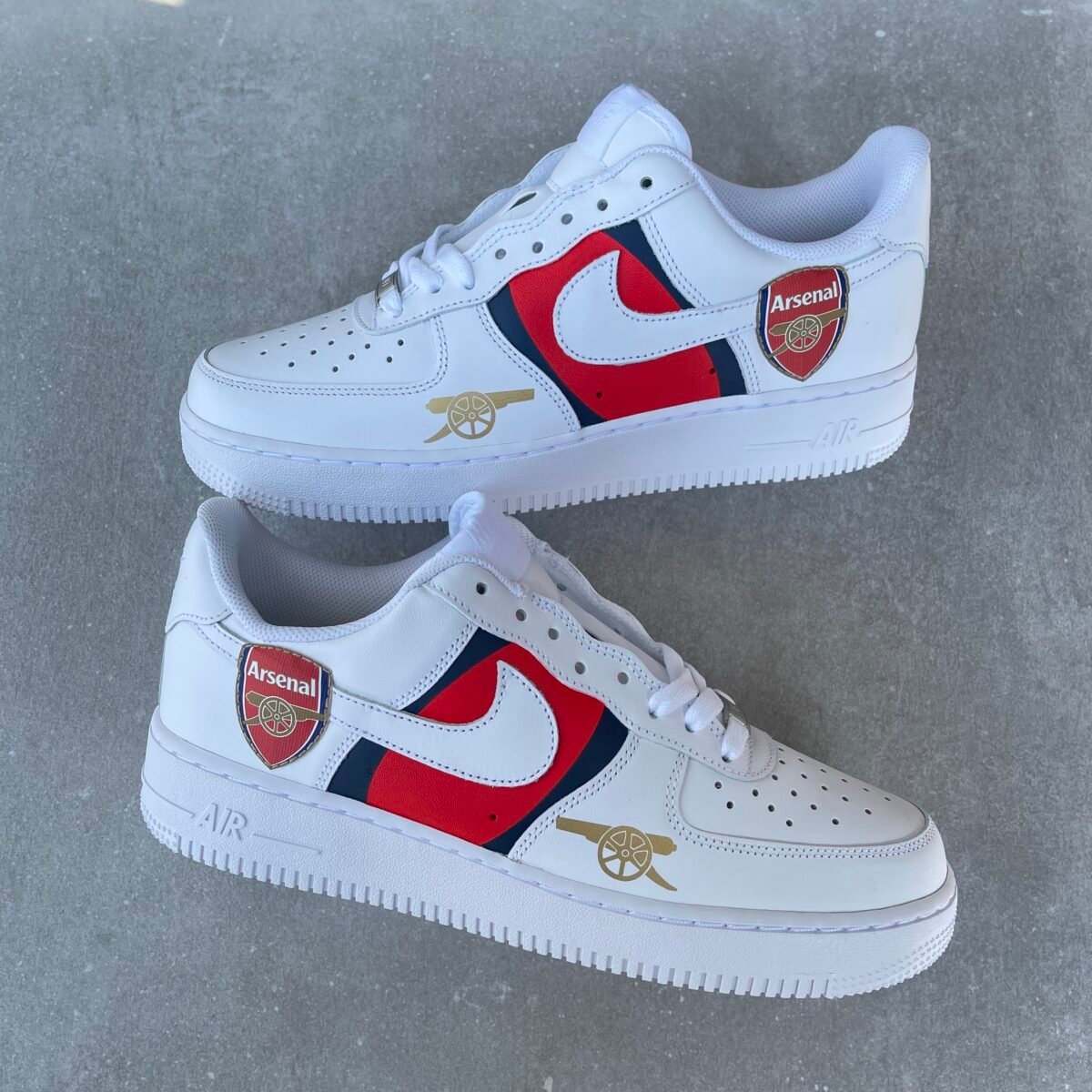 Custom AIR FORCE 1 inspired by the English football club, “Arsenal”.