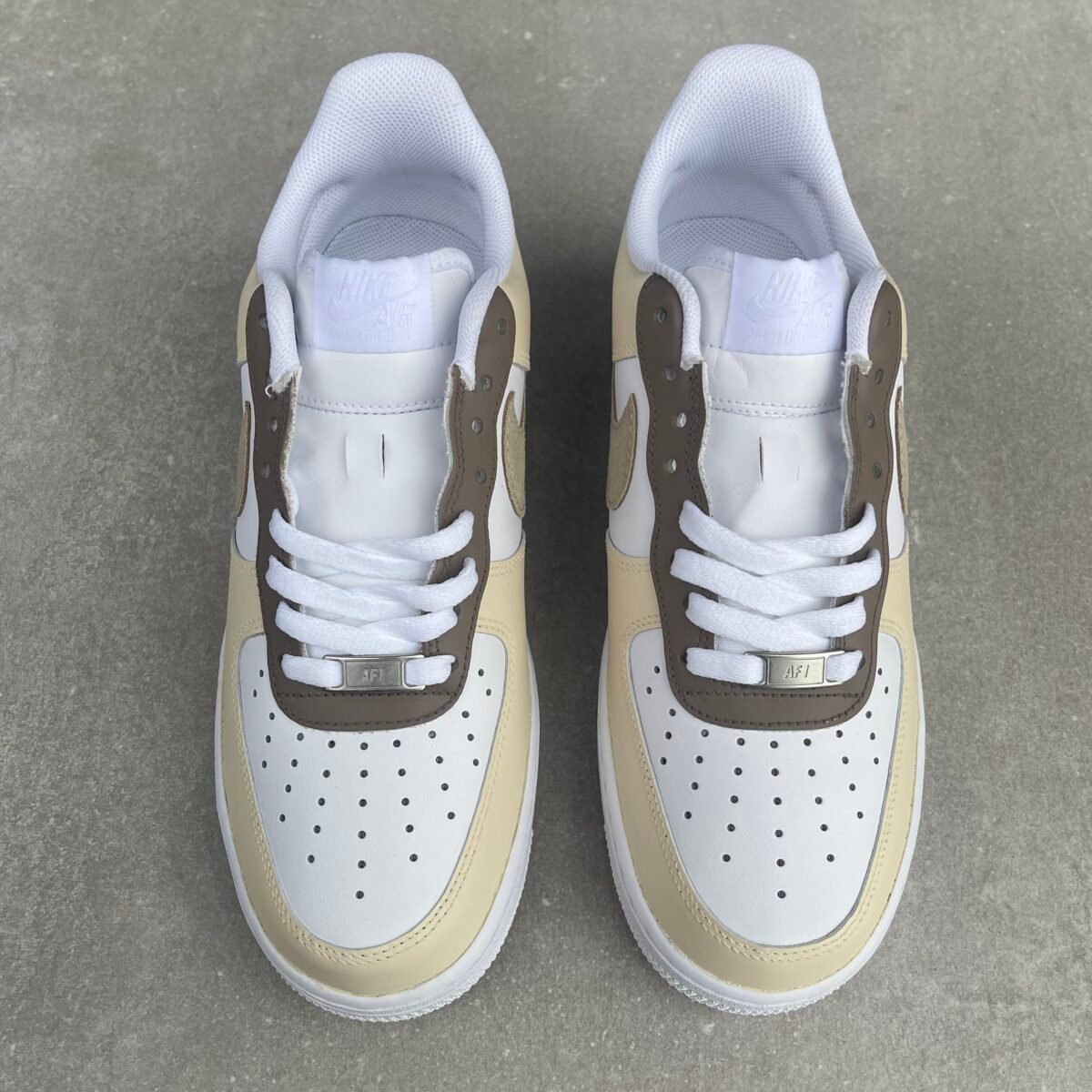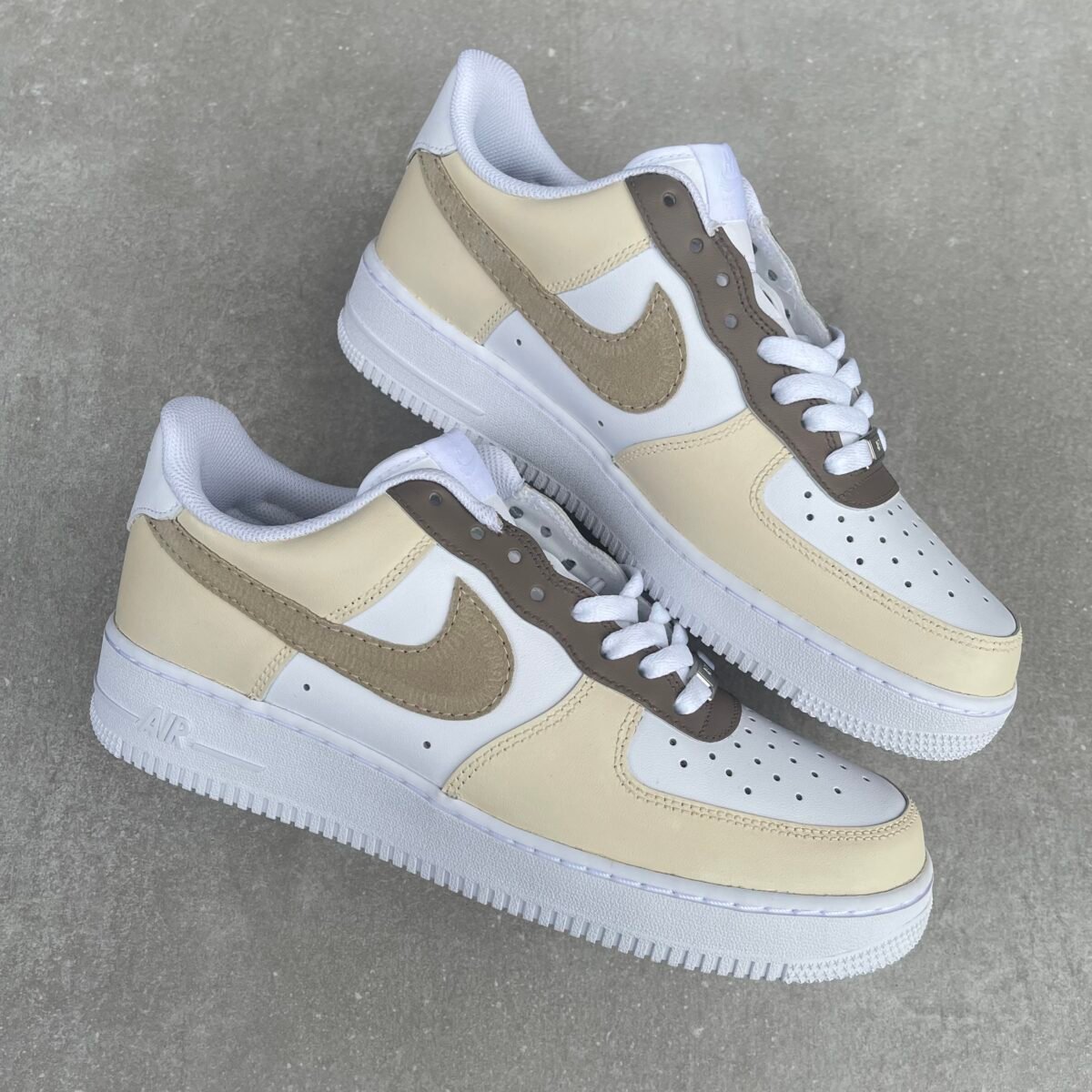 CUSTOM AIR FORCE 1 painted with different tints of beige. Painted with the best quality paint in the game. Scratch resistant and 100% waterproof. The swoosh is made out of beige suede.