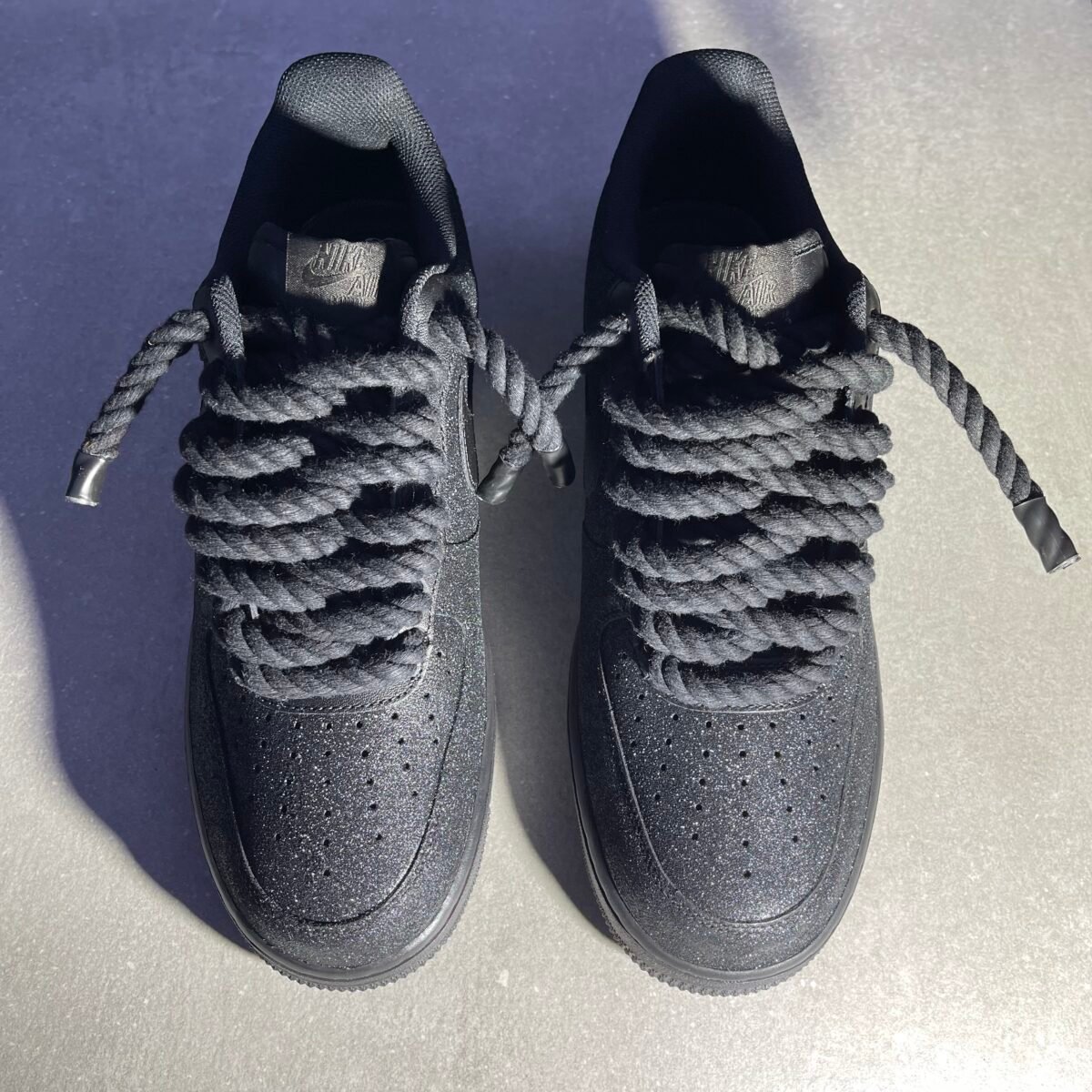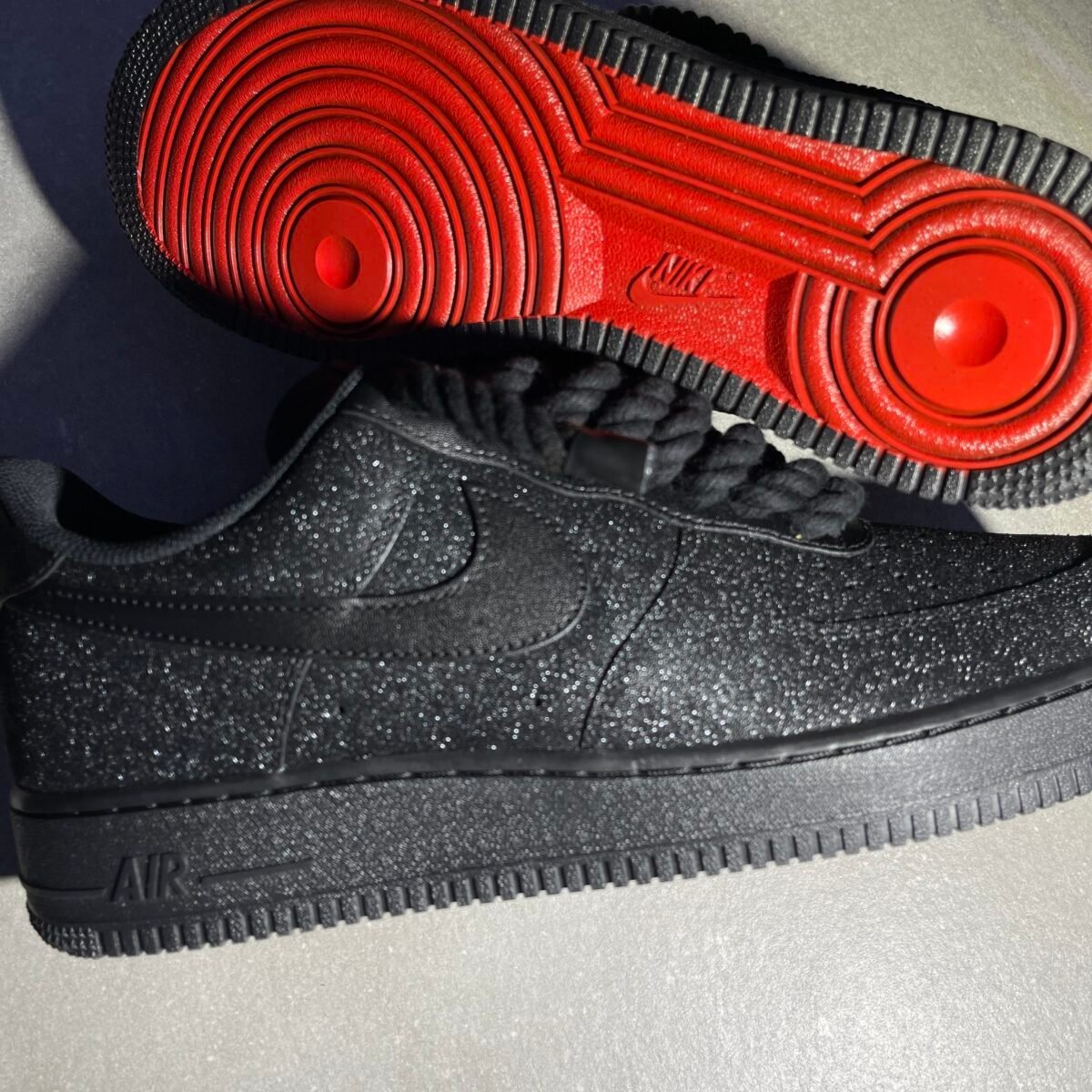Custom AIR FORCE 1 black – Glitters with red soles & rope laces