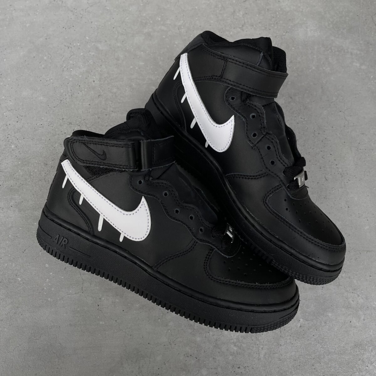 Custom AIR FORCE 1 black mid – Dripping swoosh (EU 35,5 / US 3,5)