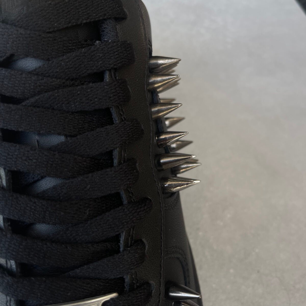 Custom AIR FORCE 1 black with black metal spikes screwed on the shoes. Special screws are used so you won’t feel anything while wearing these shoes. Inspired by Ye’s outfit on the Donda release show.