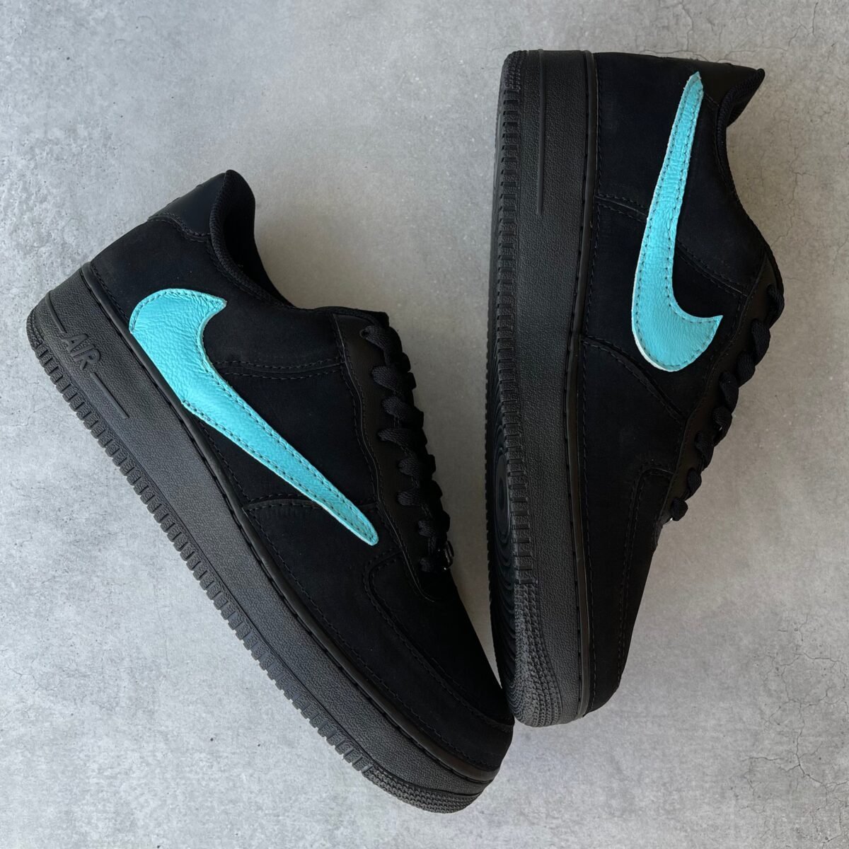 Custom AIR FORCE 1 black – Tiffany inspired Reverse swoosh