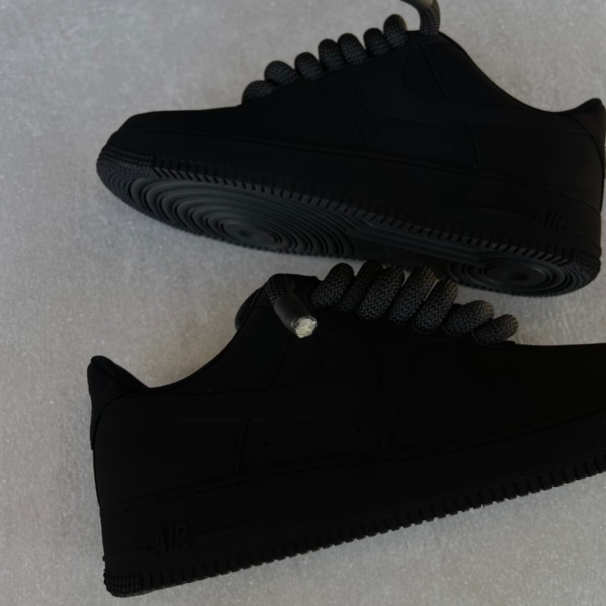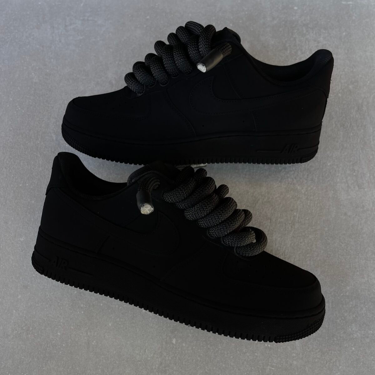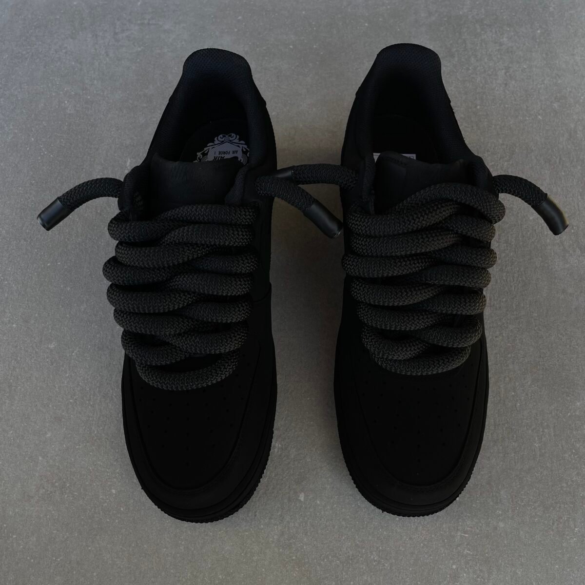 Custom black AIR FORCE 1 painted with the blackest paint. + rope laces and red soles.