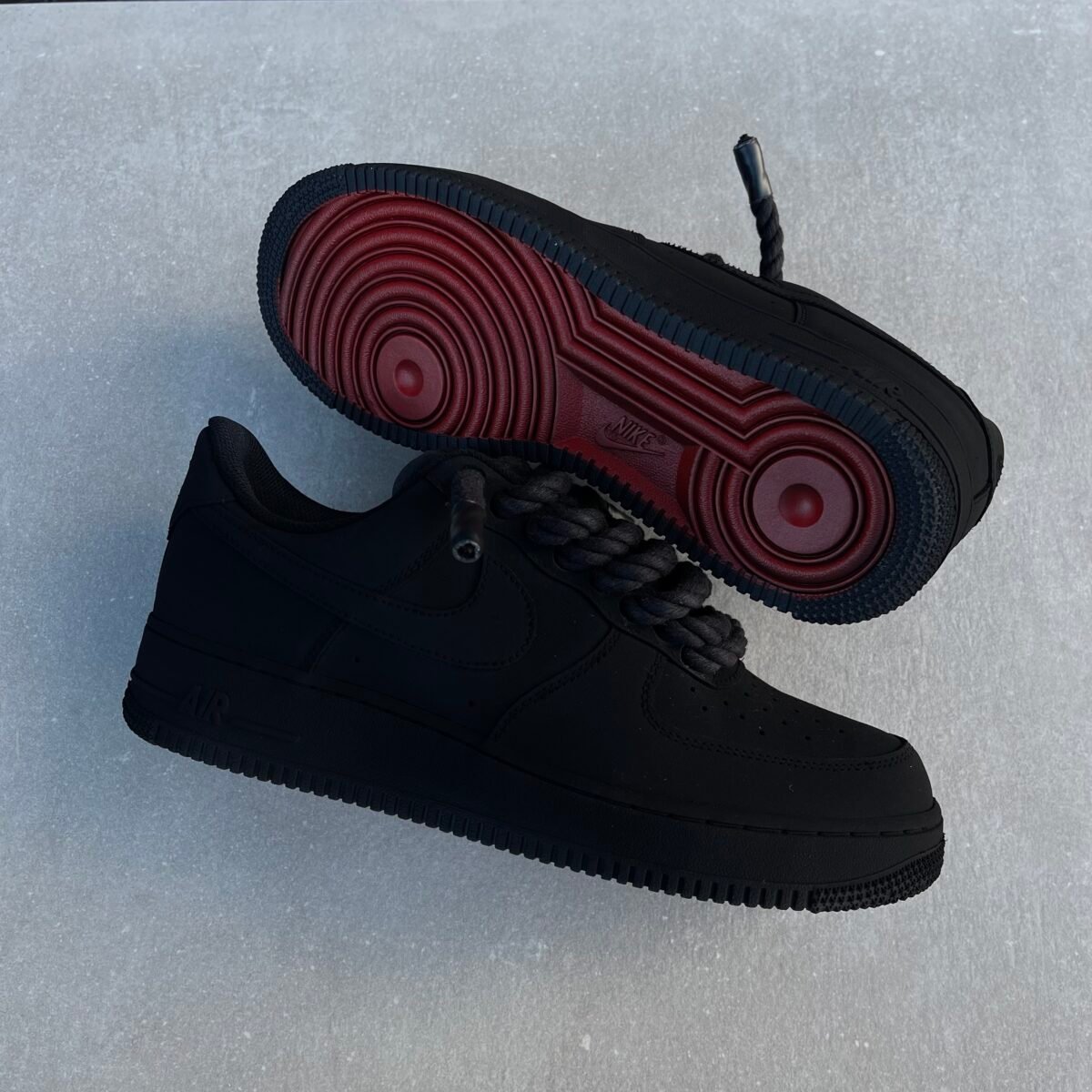 Custom AIR FORCE 1 – Blackest (rope laces / red soles)