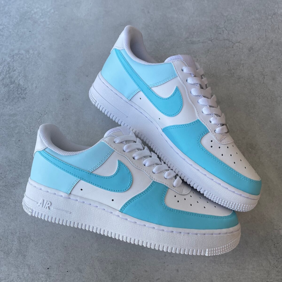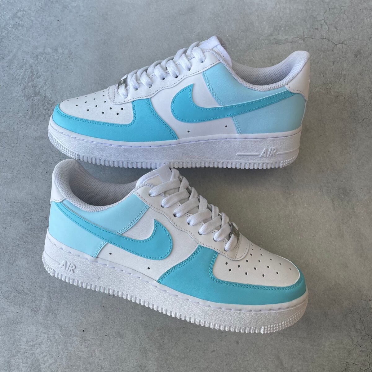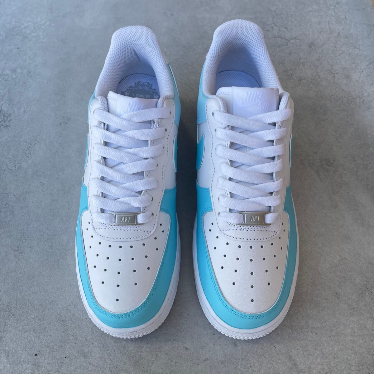 CUSTOM AIR FORCE 1 painted with different tints of blue. Painted with the best quality paint in the game. Scratch resistant and 100% waterproof
