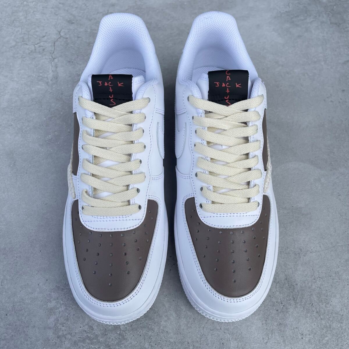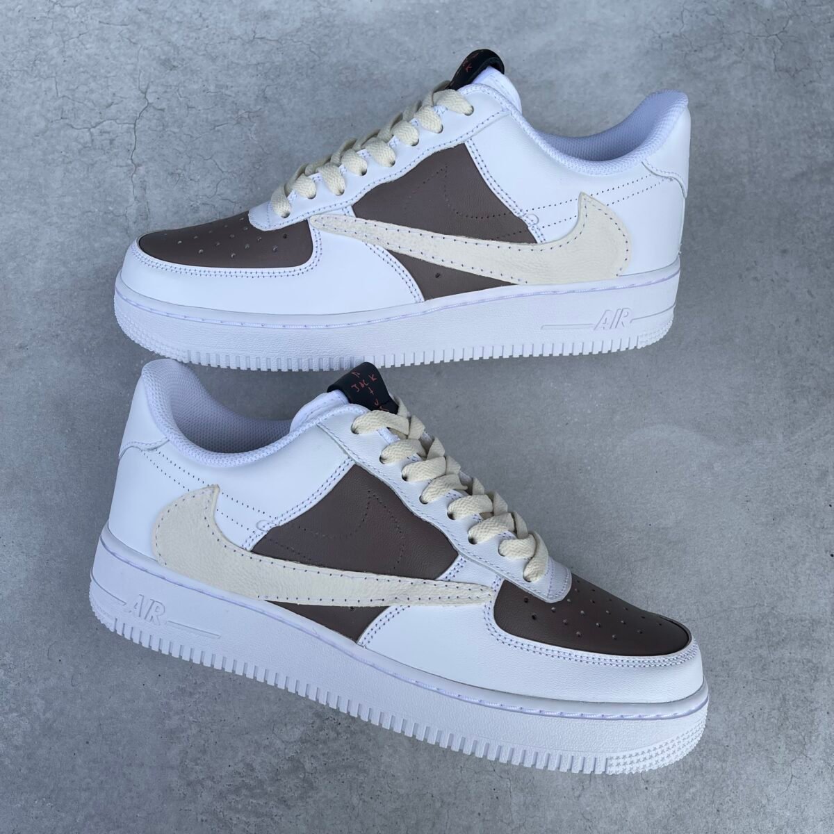 Custom AIR FORCE 1 – Cactus Jack reverse swoosh (brown/white)