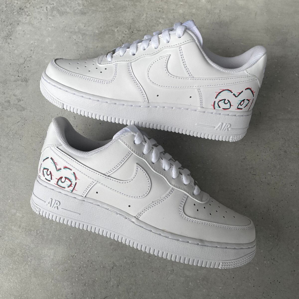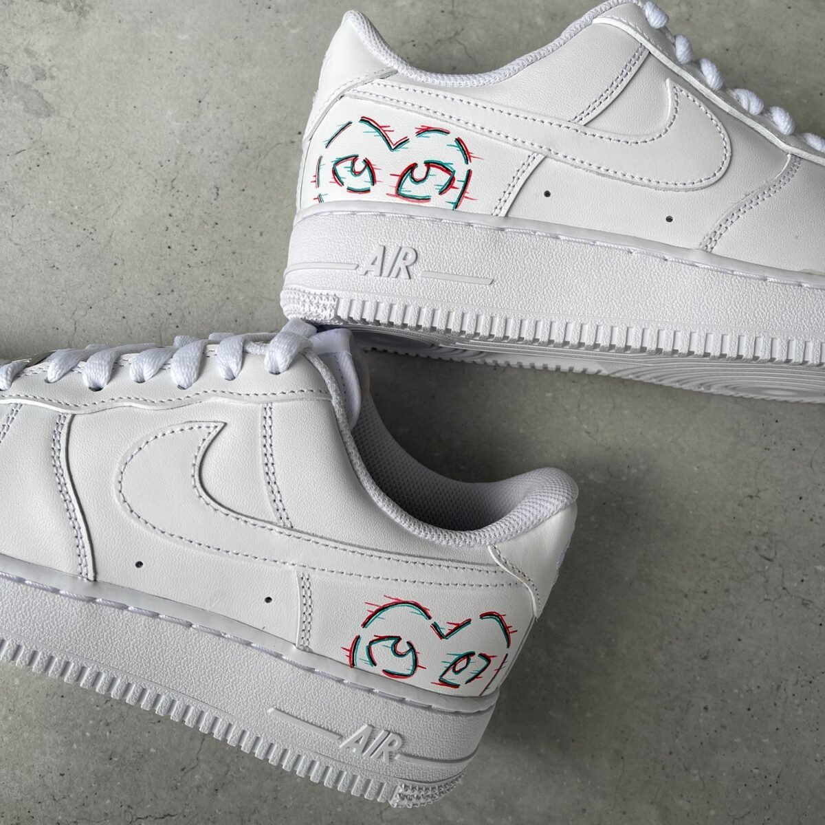 Custom AIR FORCE 1 with a painted glitch CDG heart. Painted with the best quality paint in the game. Scratch resistant and 100% waterproof.