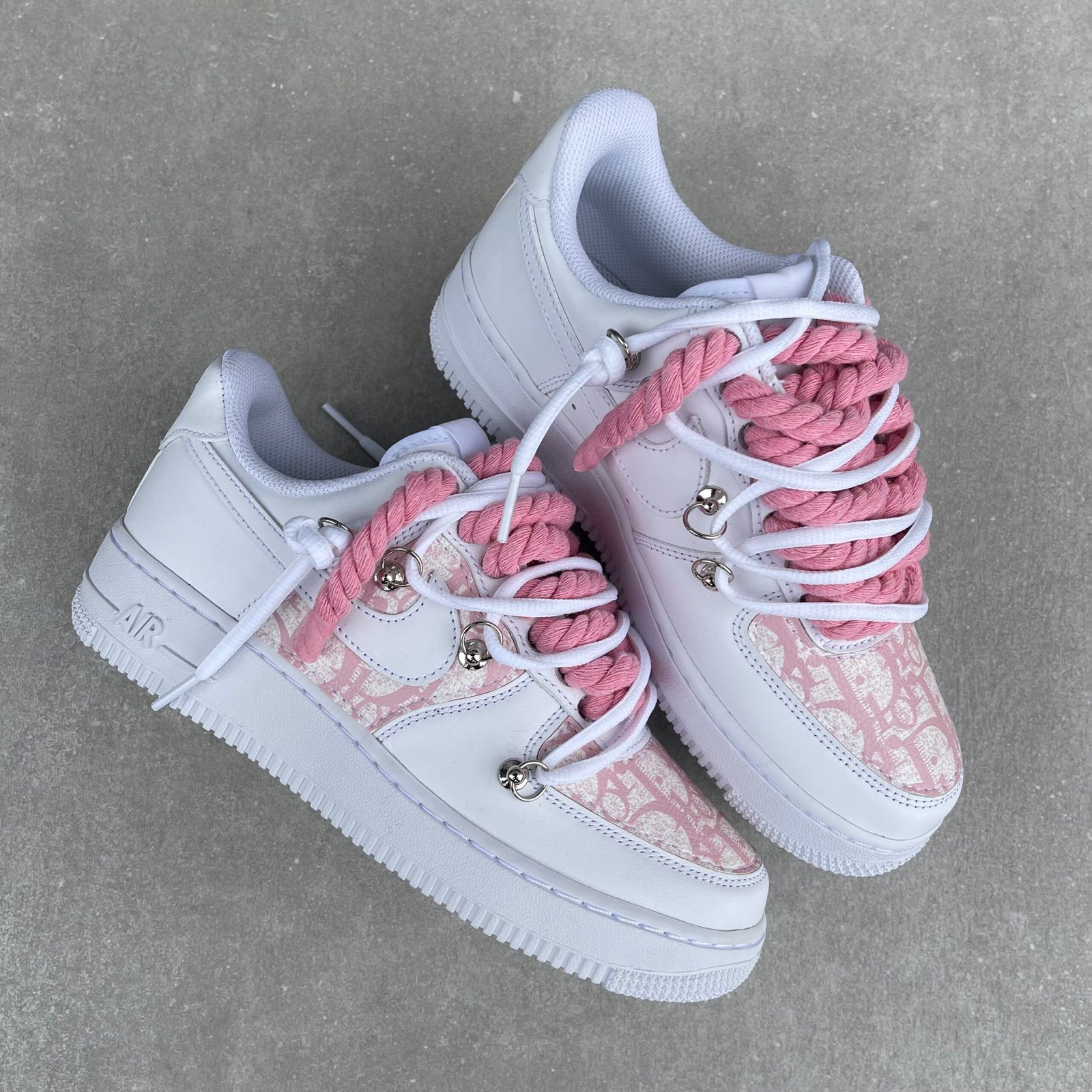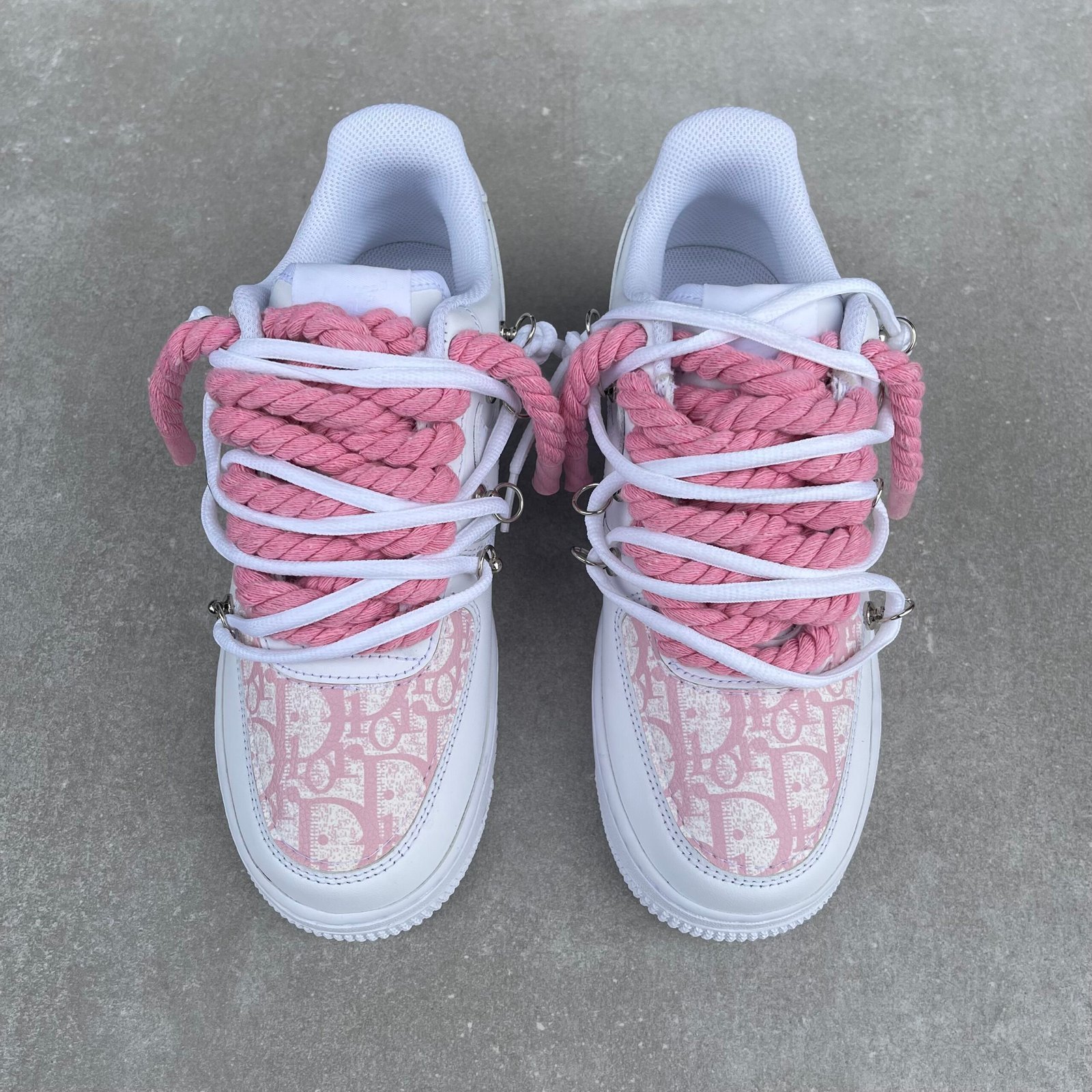 Custom AIR FORCE 1 – Christian D pink (rope laces / lot laces)