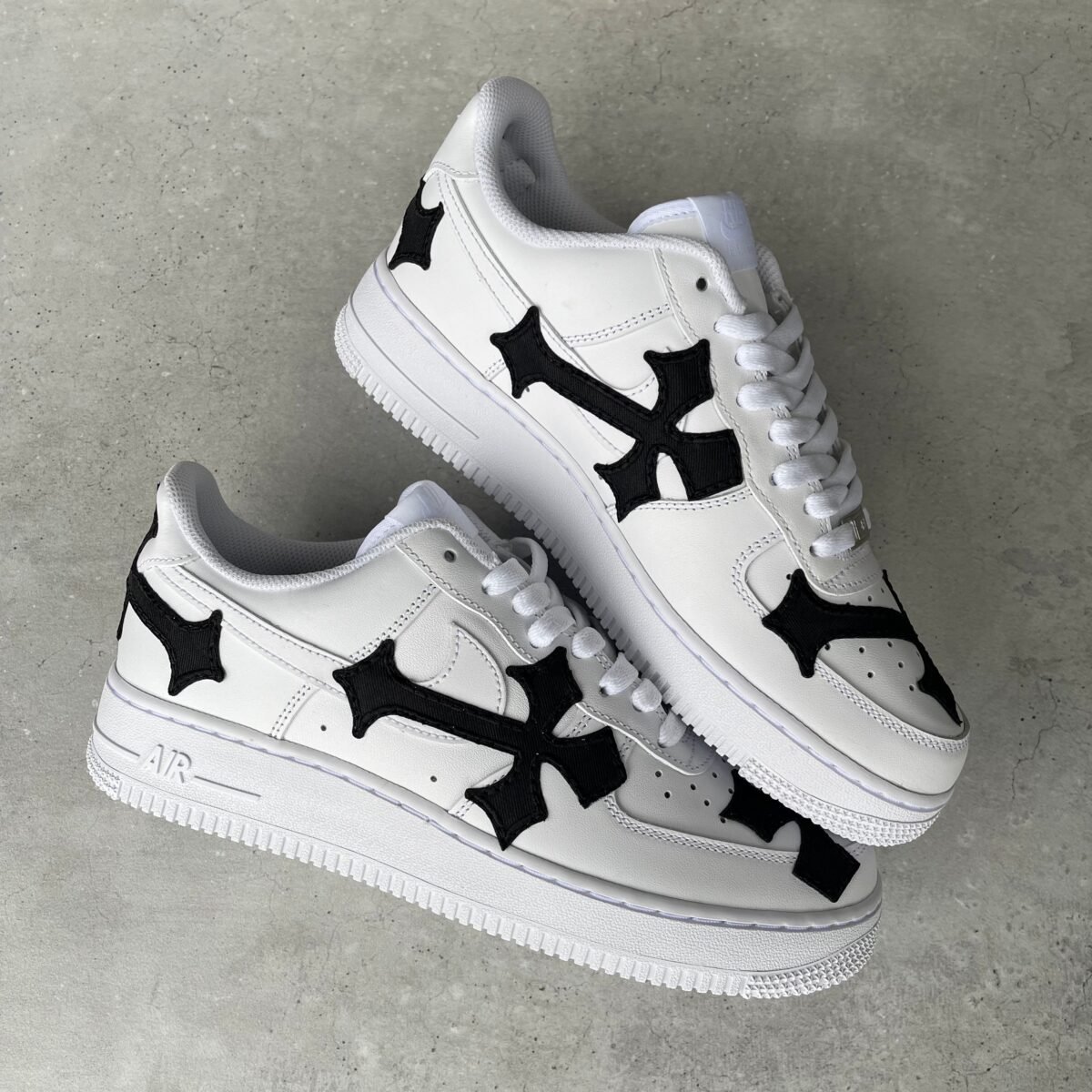 CUSTOM AIR FORCE 1 with Chrome Hearts patches sewn all over the shoes.