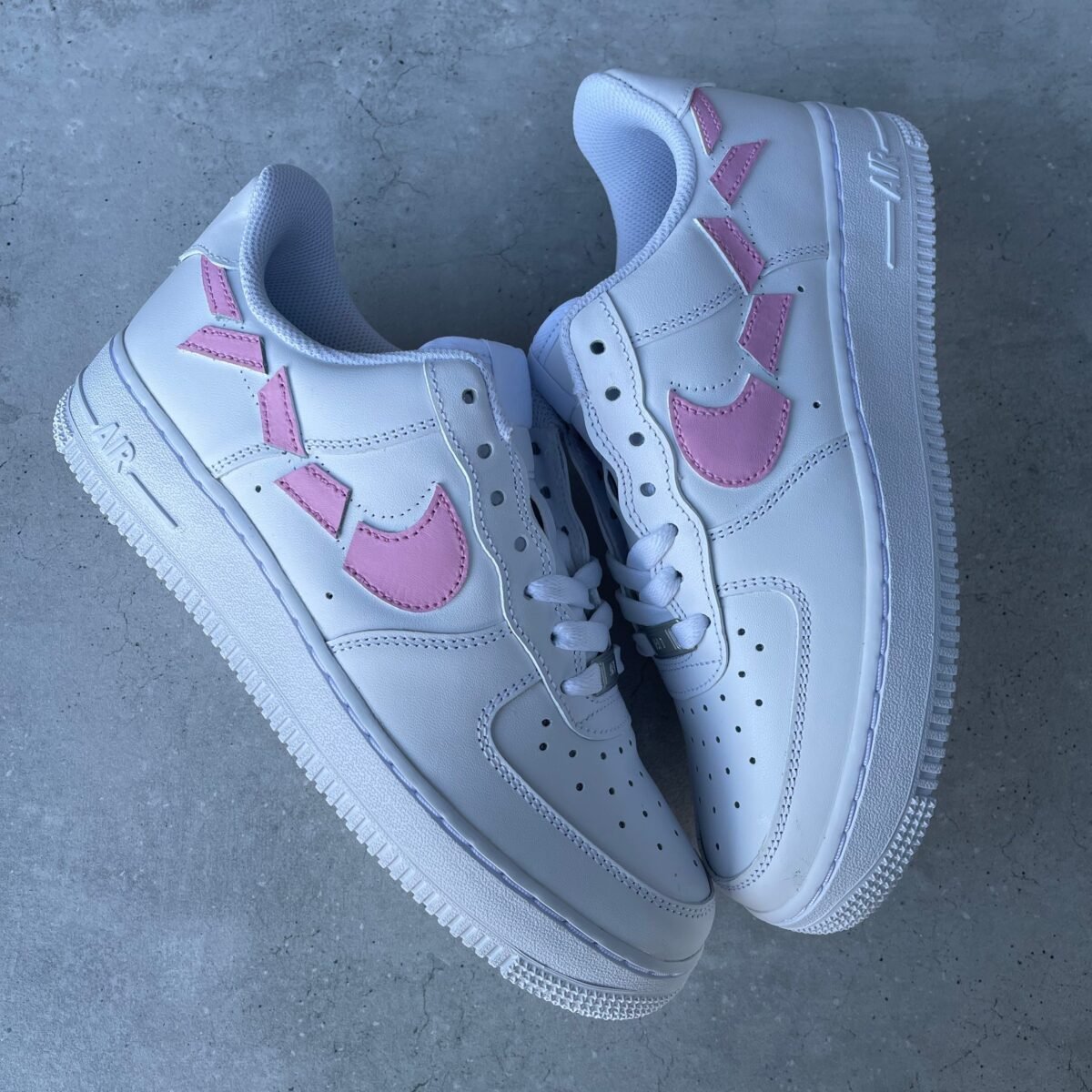 Custom AIR FORCE 1 – Destroyed swooshes (baby pink)