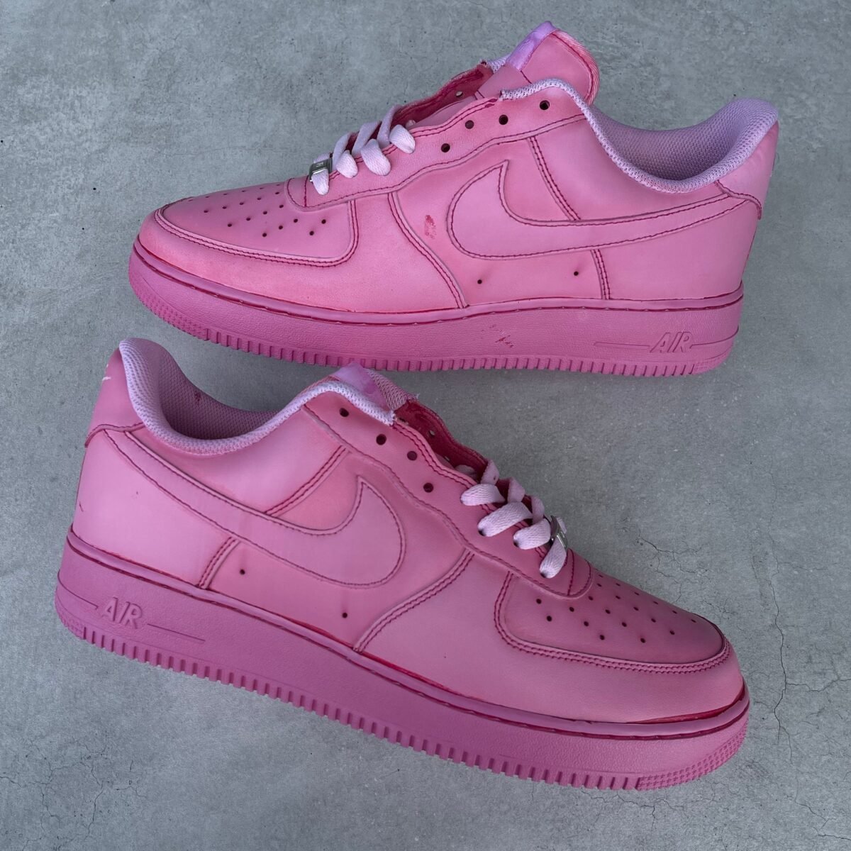 Custom AIR FORCE 1 dipped in pink pigment.