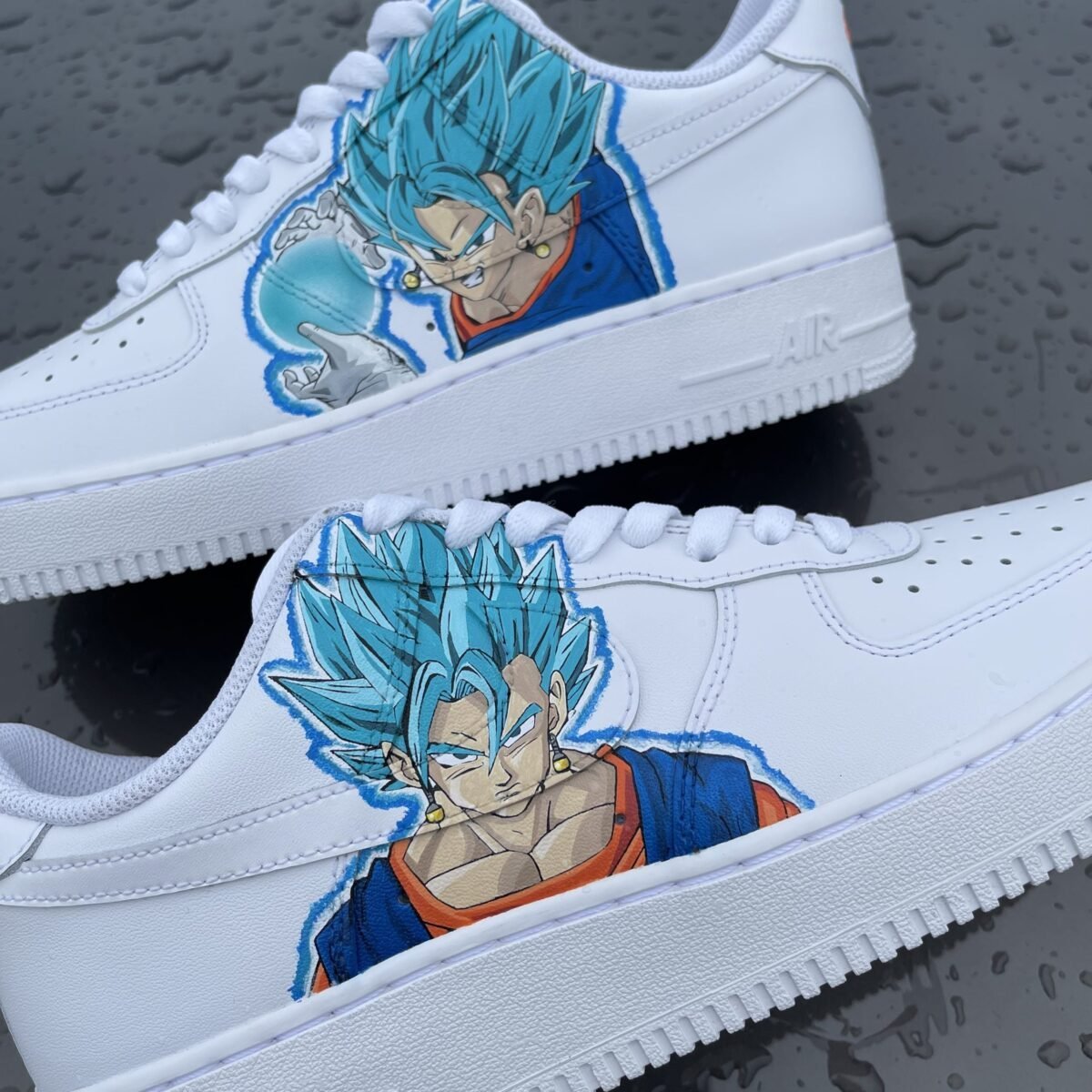 Custom AIR FORCE 1 painted in a Dragon Ball style with Vegito on both shoes. Painted with the best quality paint in the game. Scratch resistant and 100% waterproof