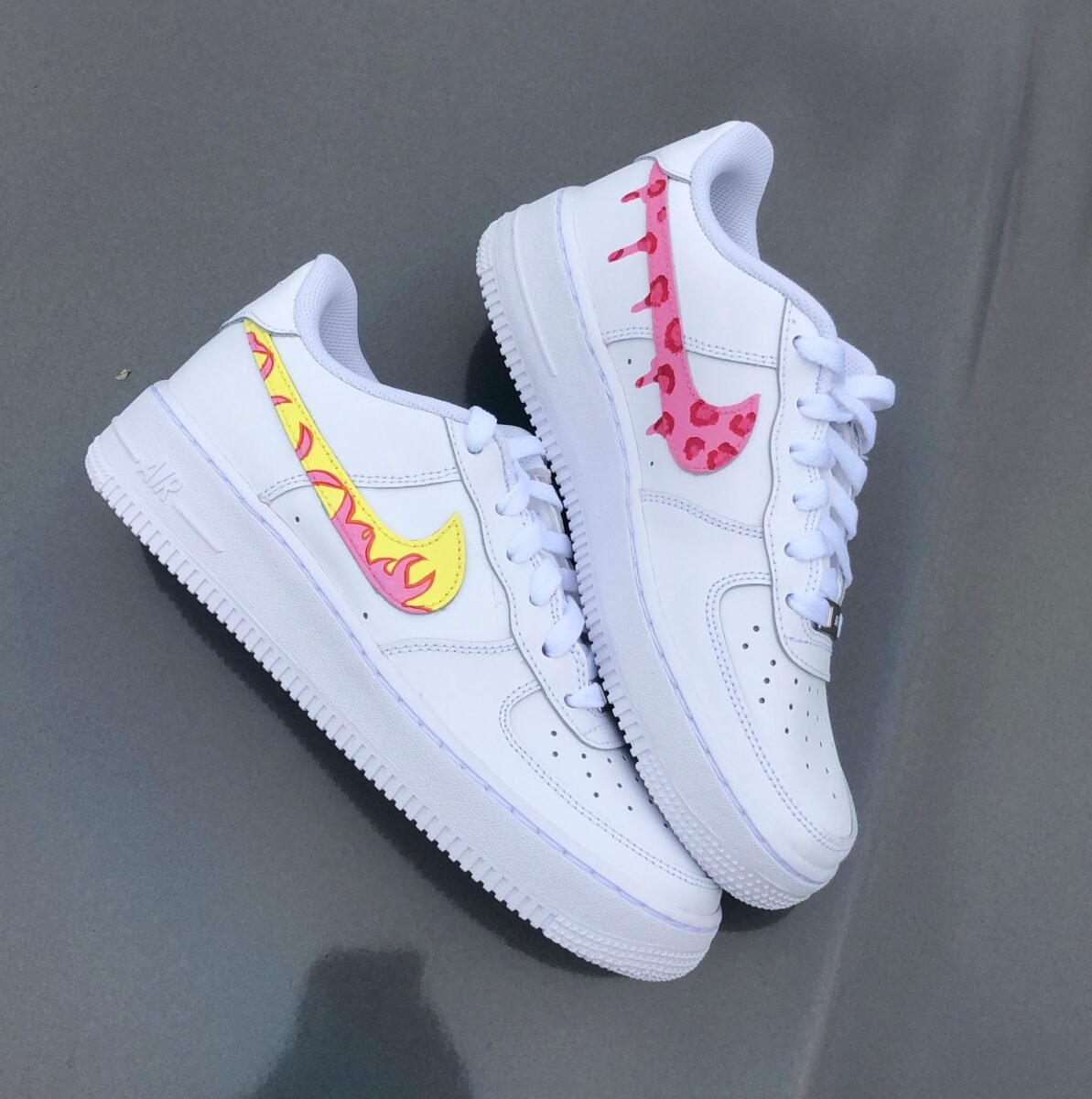 Custom AIR FORCE 1 – Flame / Pink tiger swoosh