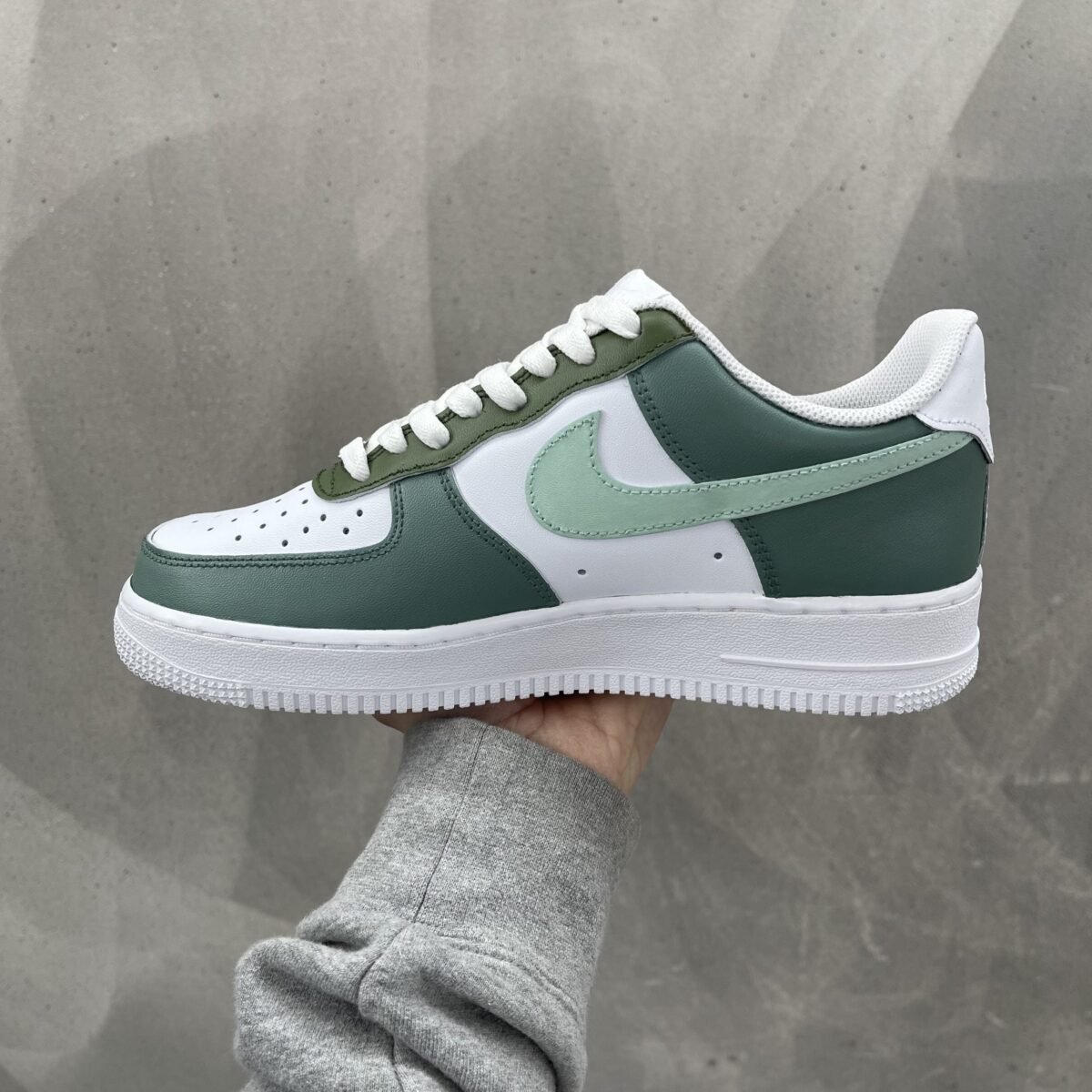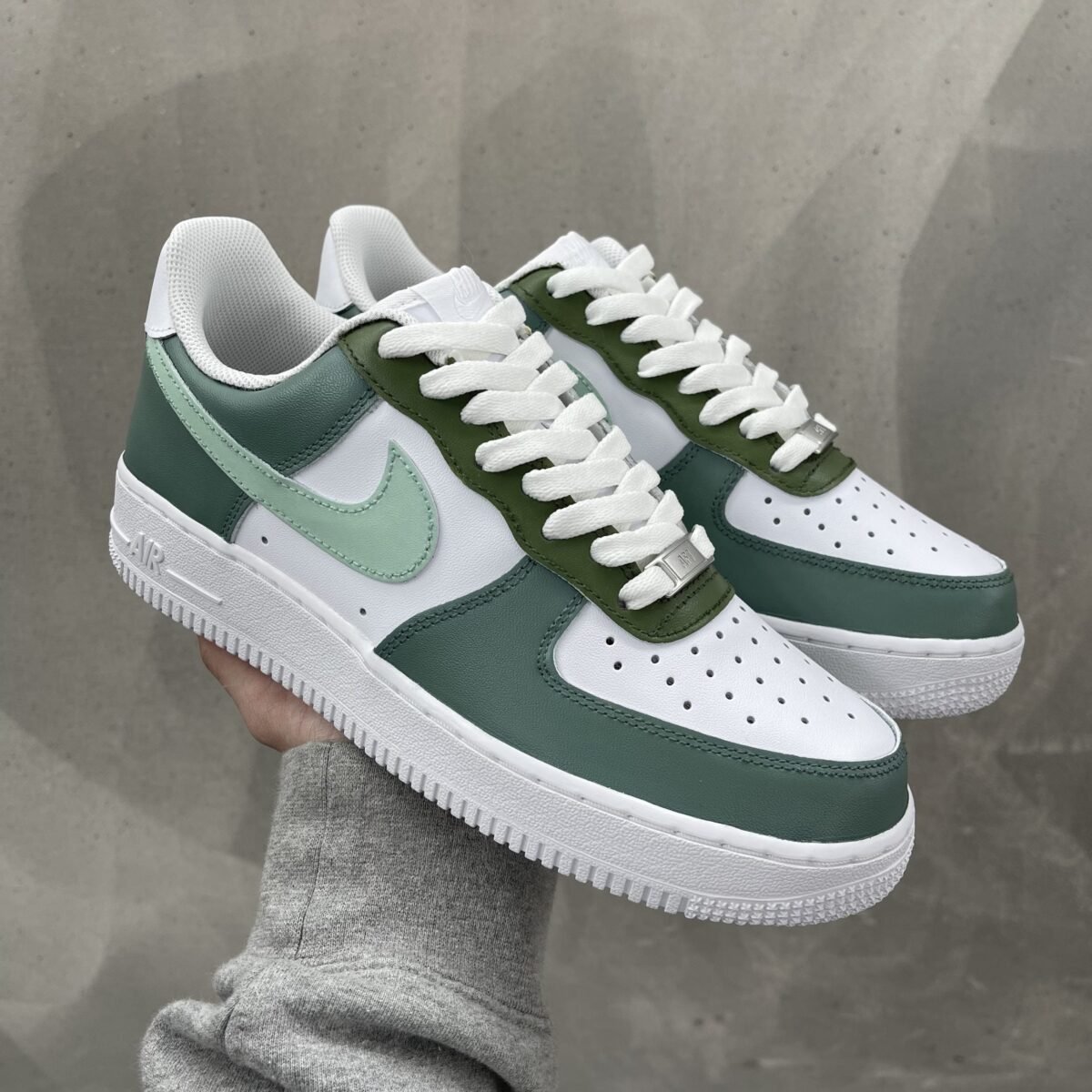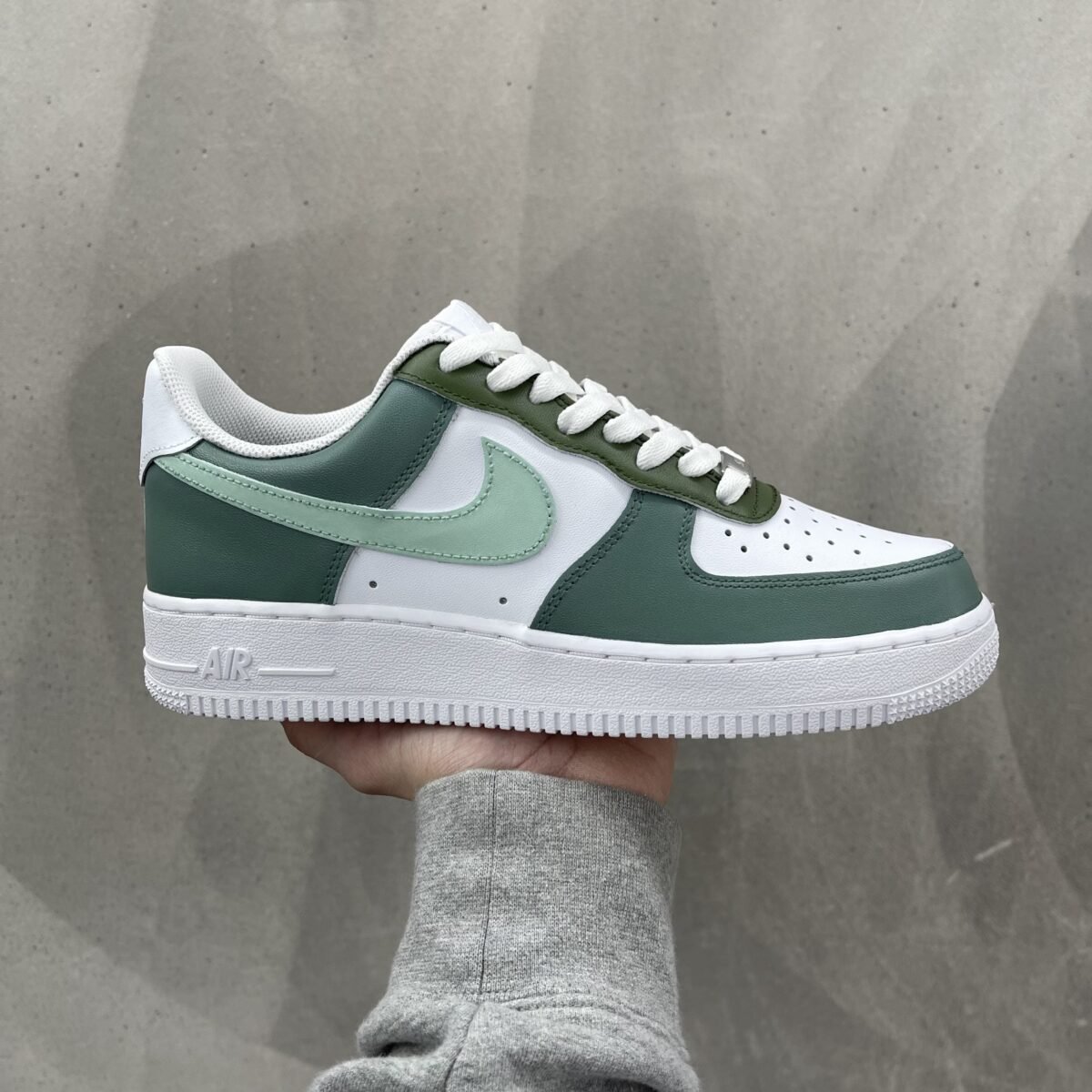 CUSTOM AIR FORCE 1 painted in green tints. Painted with the best quality paint in the game. Scratch resistant and 100% waterproof