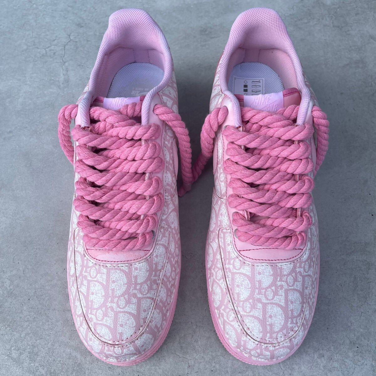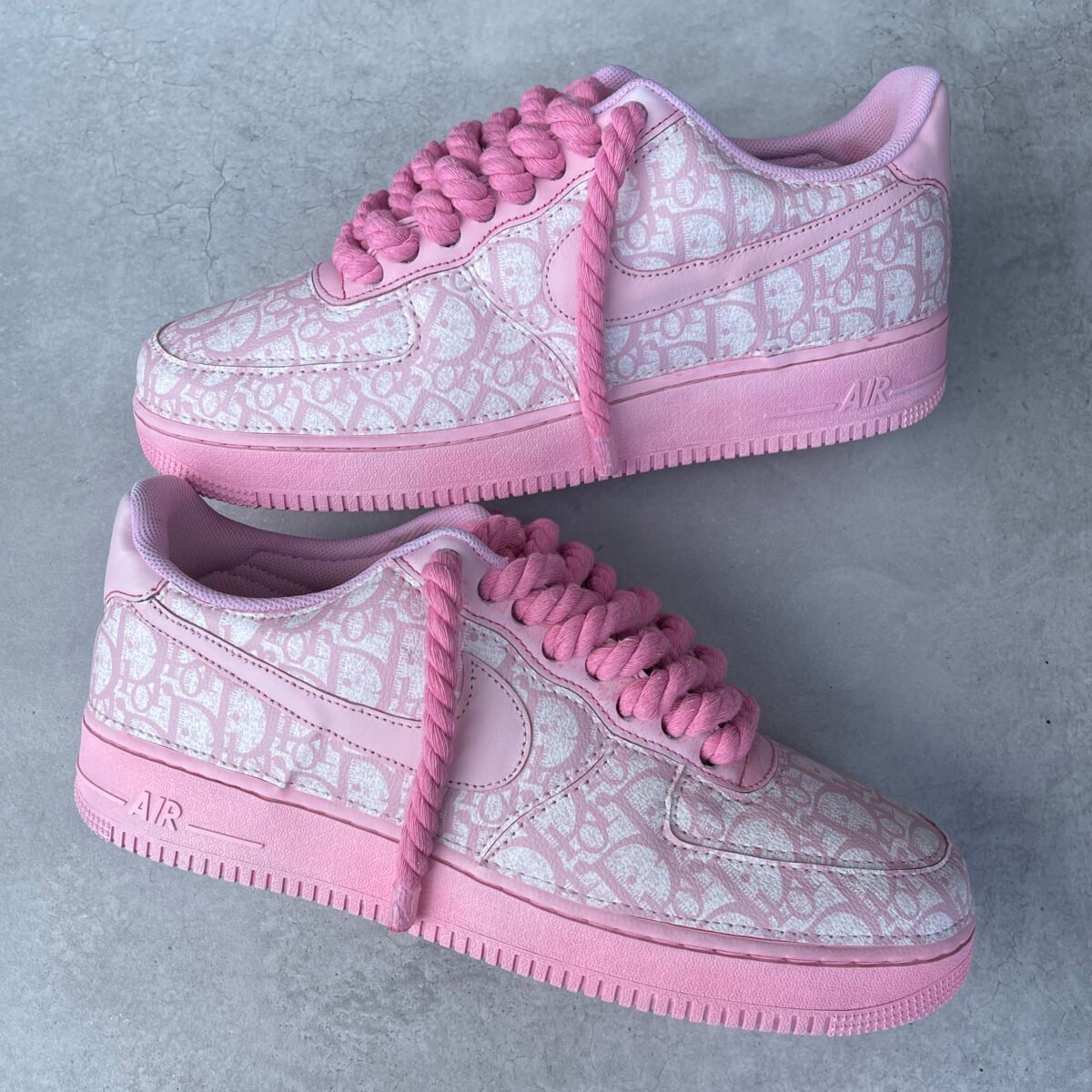 Custom AIR FORCE 1 – Full Christian D pink (rope laces)