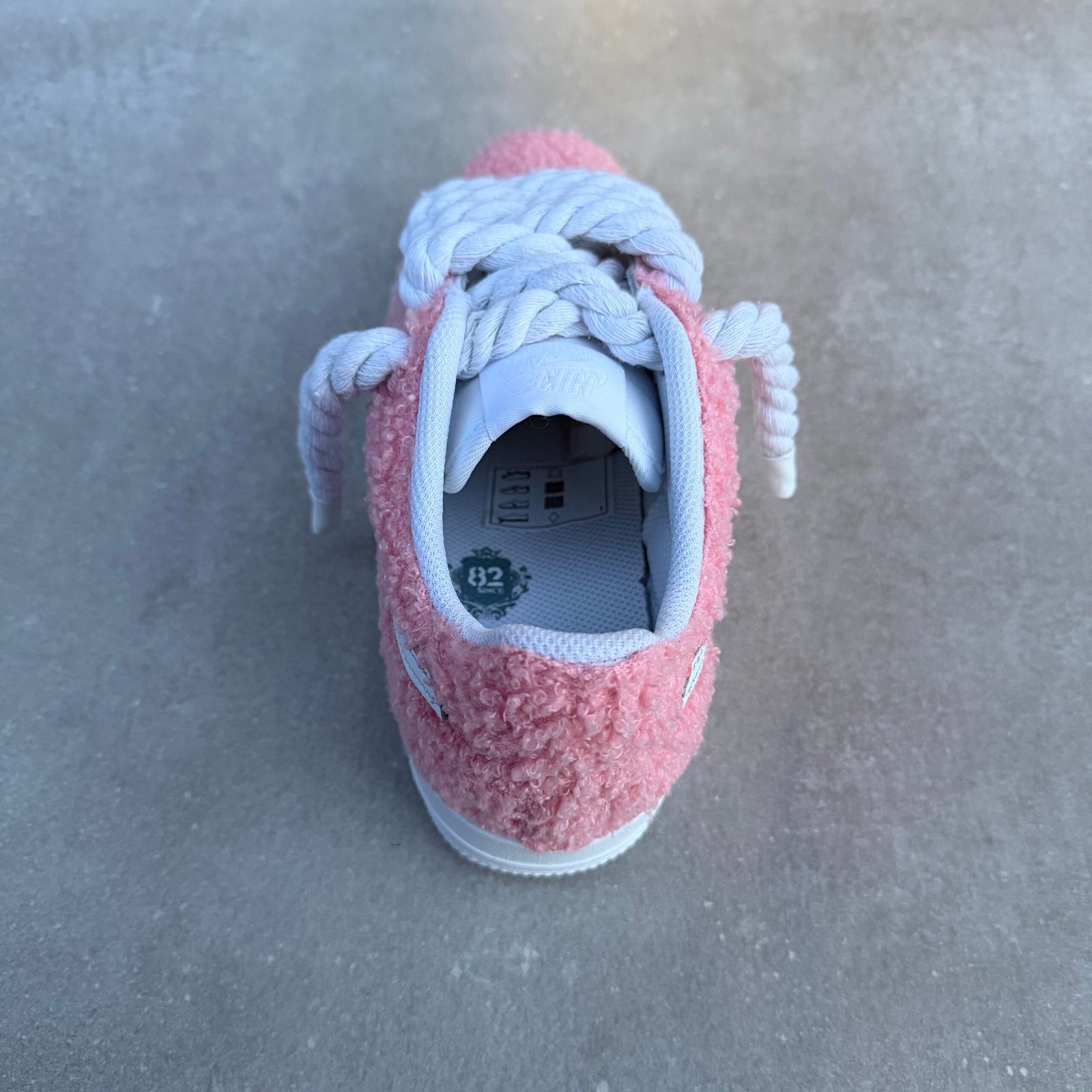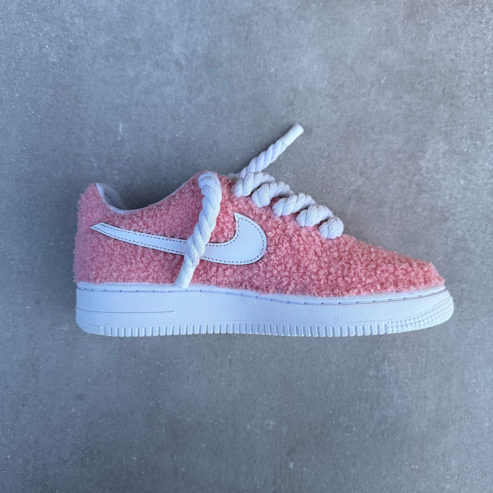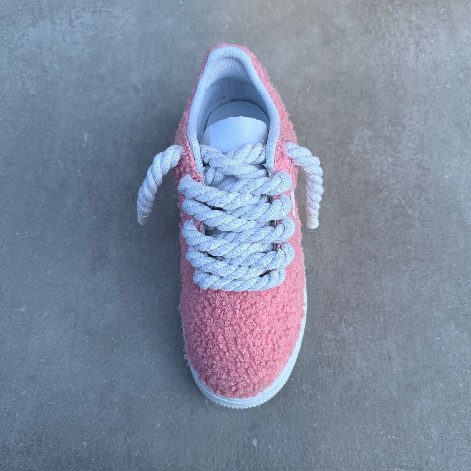 Custom AIR FORCE 1 – Full pink Teddy (rope laces)
