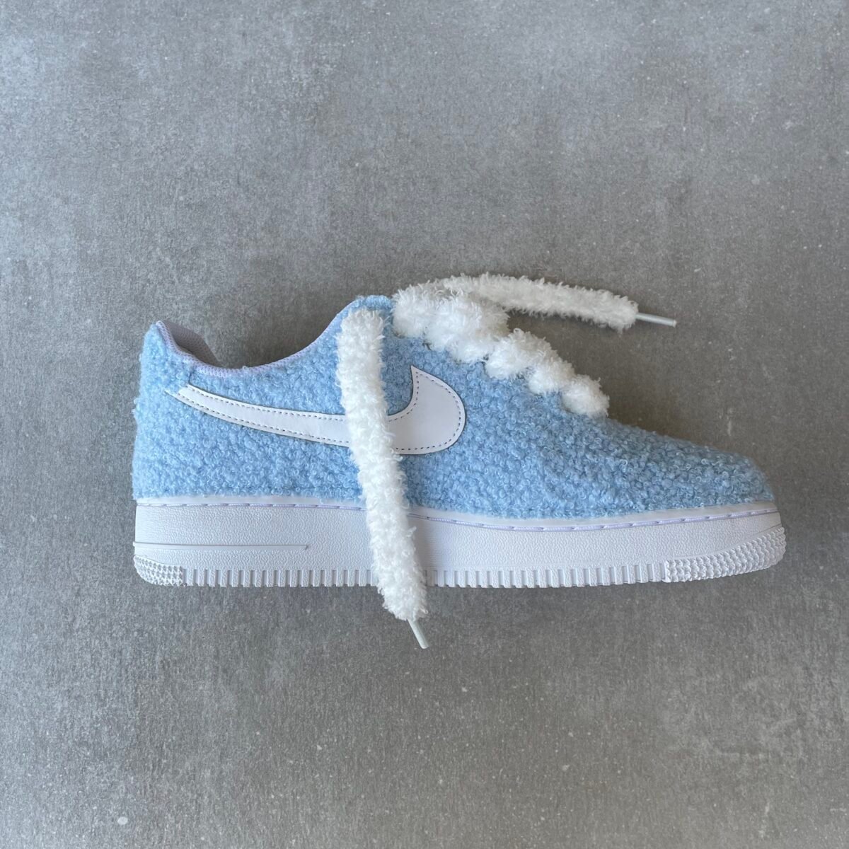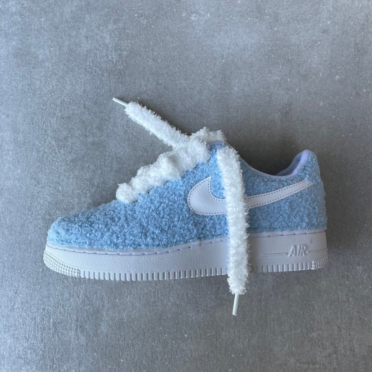 Custom AIR FORCE 1 – Full Teddy baby blue (fluffy laces)