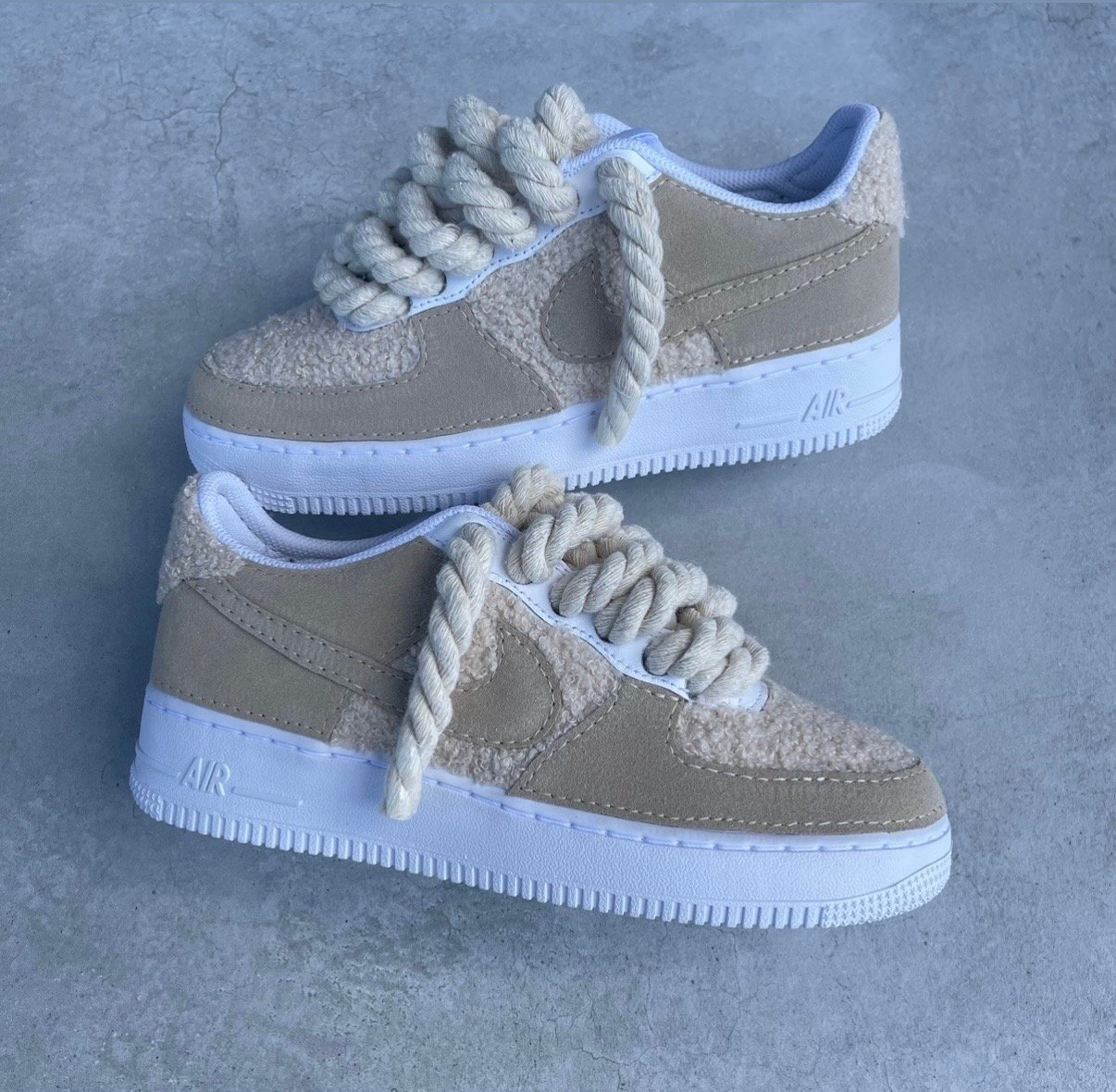 Custom AIR FORCE 1 – Full Teddy / Suede rope laces (EU 37,5 / US 5)
