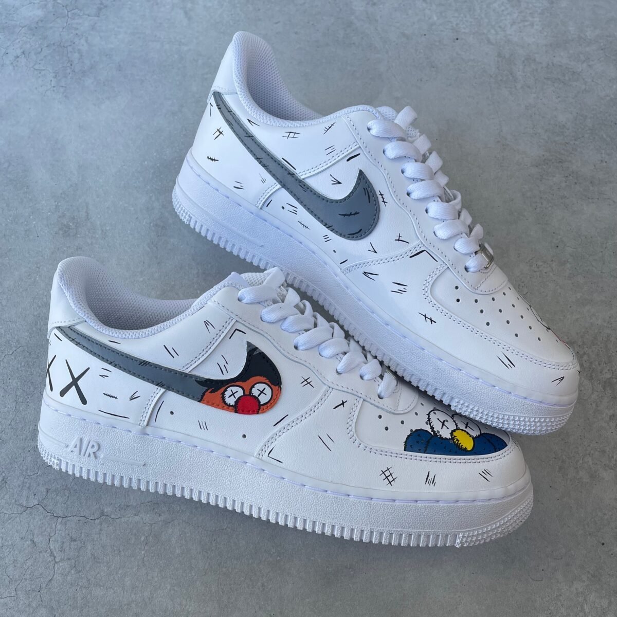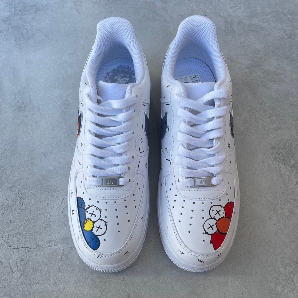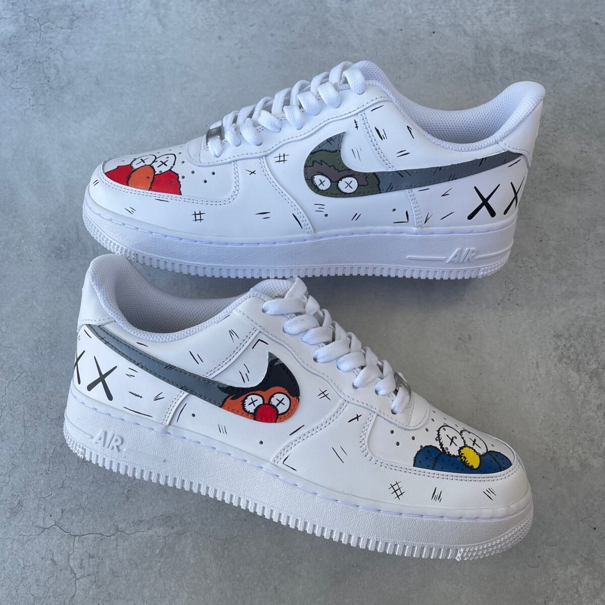 Cucstom AIR FORCE 1 painted in KAWS style. Painted with the best quality paint in the game. Scratch resistant and 100% waterproof