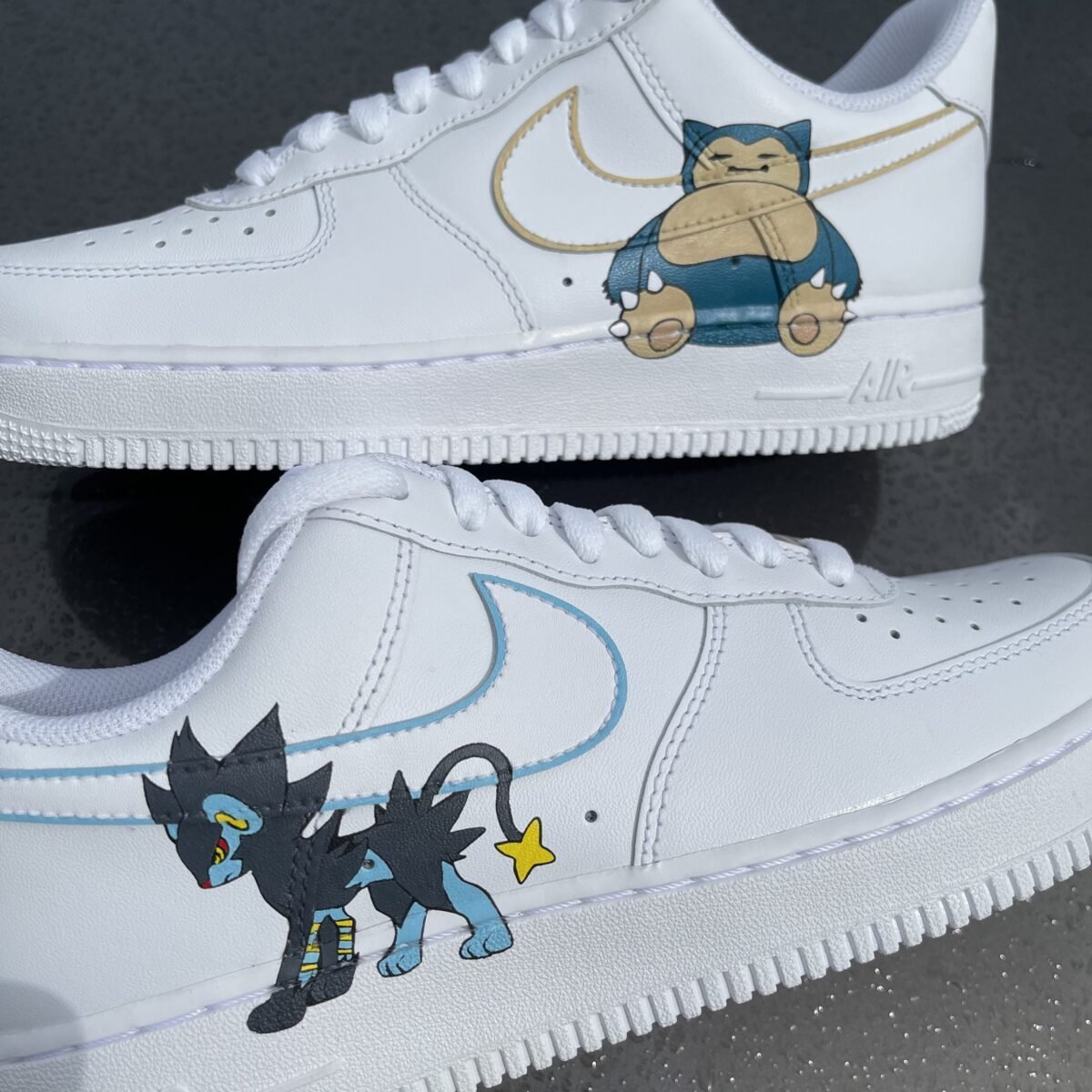 Custom AIR FORCE 1 with Snorlax and Luxray painted on the outsides. Painted with the best quality paint in the game. Scratch resistant and 100% waterproof.