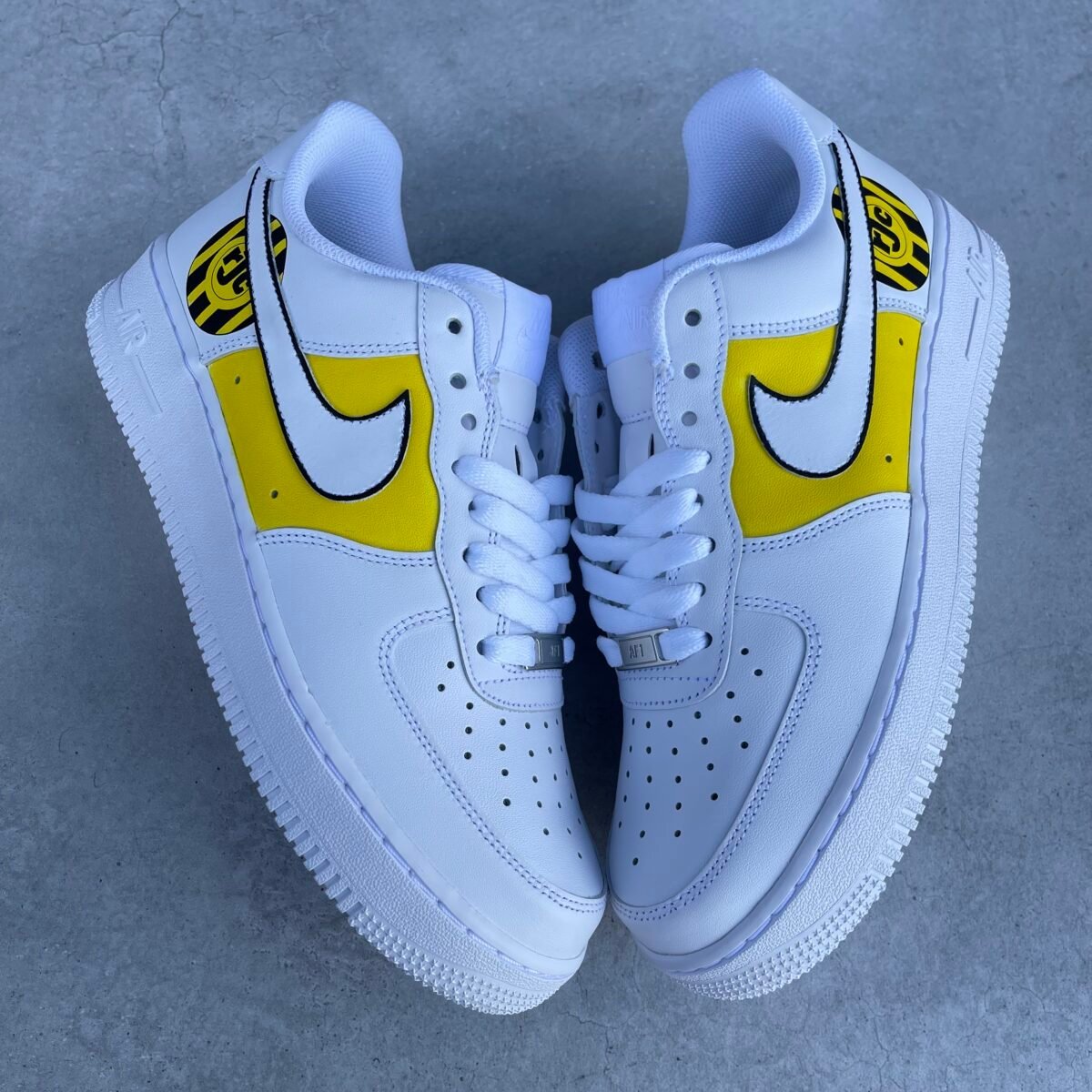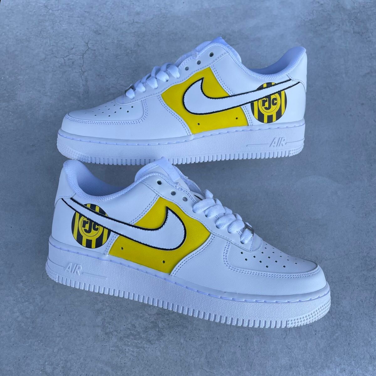 Custom AIR FORCE 1 inspired by the Dutch Football club “RODA JCā€. All paints used are 100% waterproof and scratch-resistant.