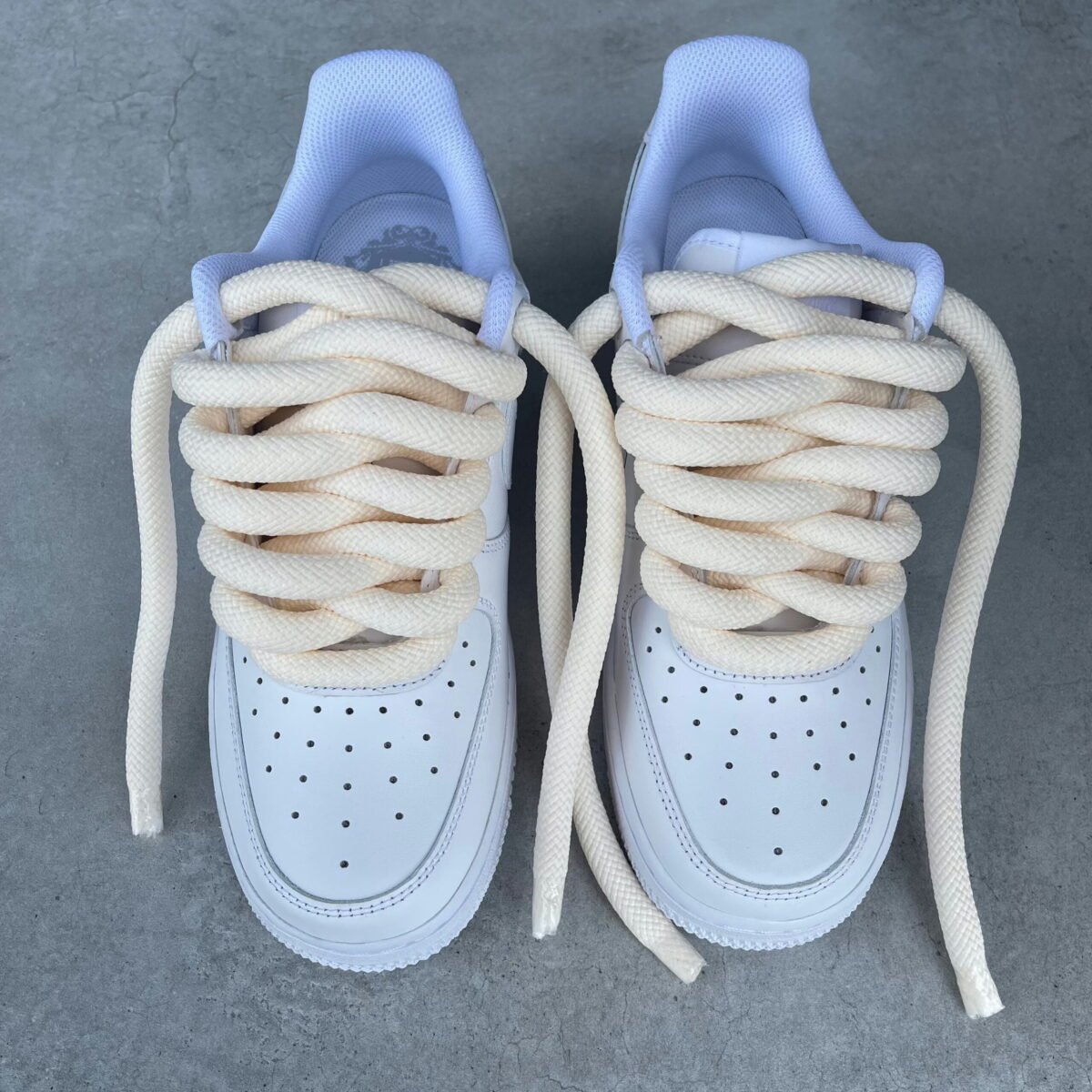 Custom AIR FORCE 1 white with the new style cream rope laces added.