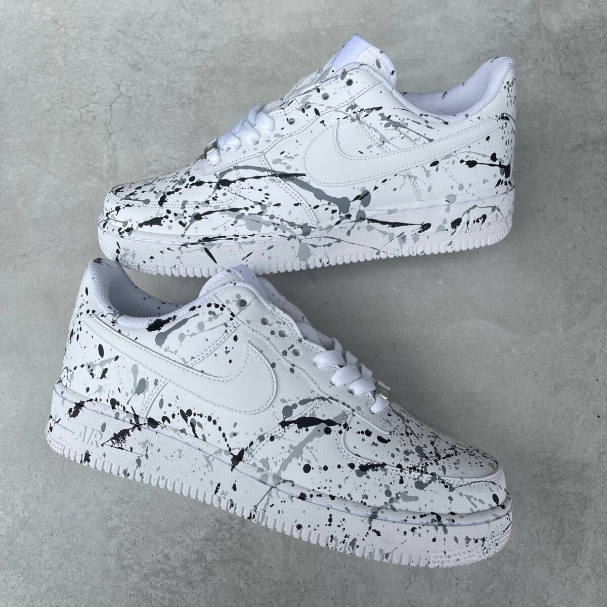 CUSTOM AIR FORCE 1 with dark grey, grey and black splash all over except for the swoosh. Painted with the best quality paint in the game. Scratch resistant and 100% waterproof