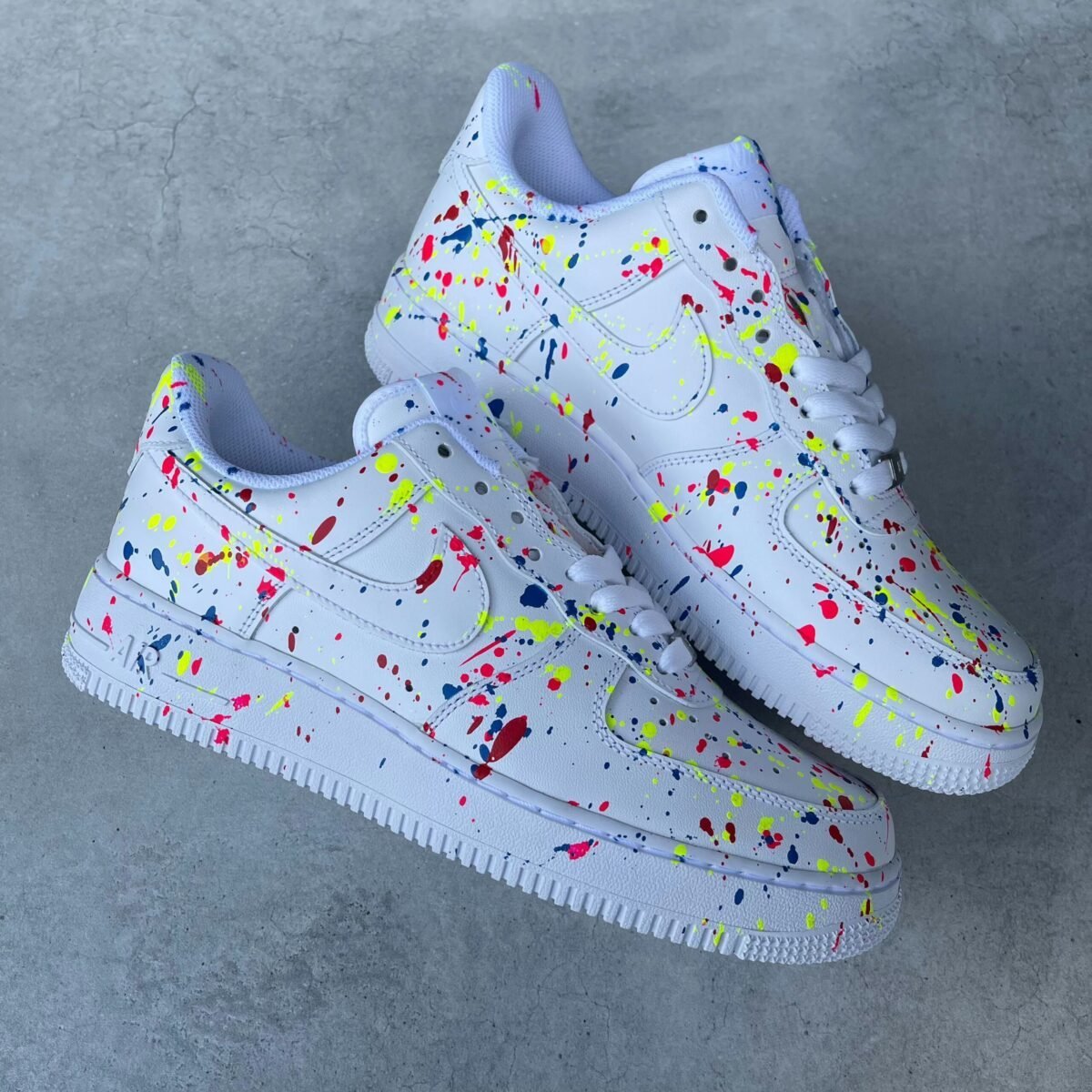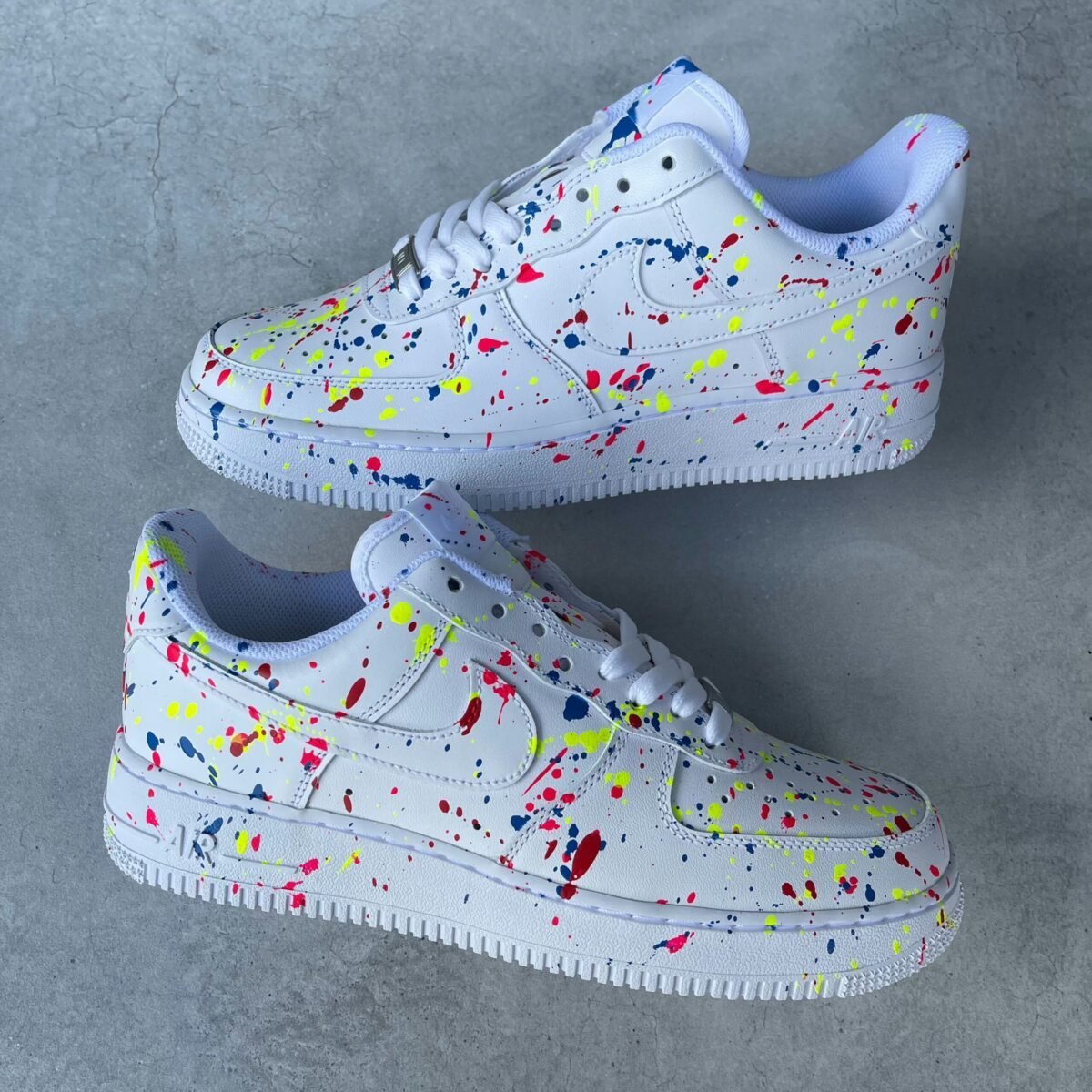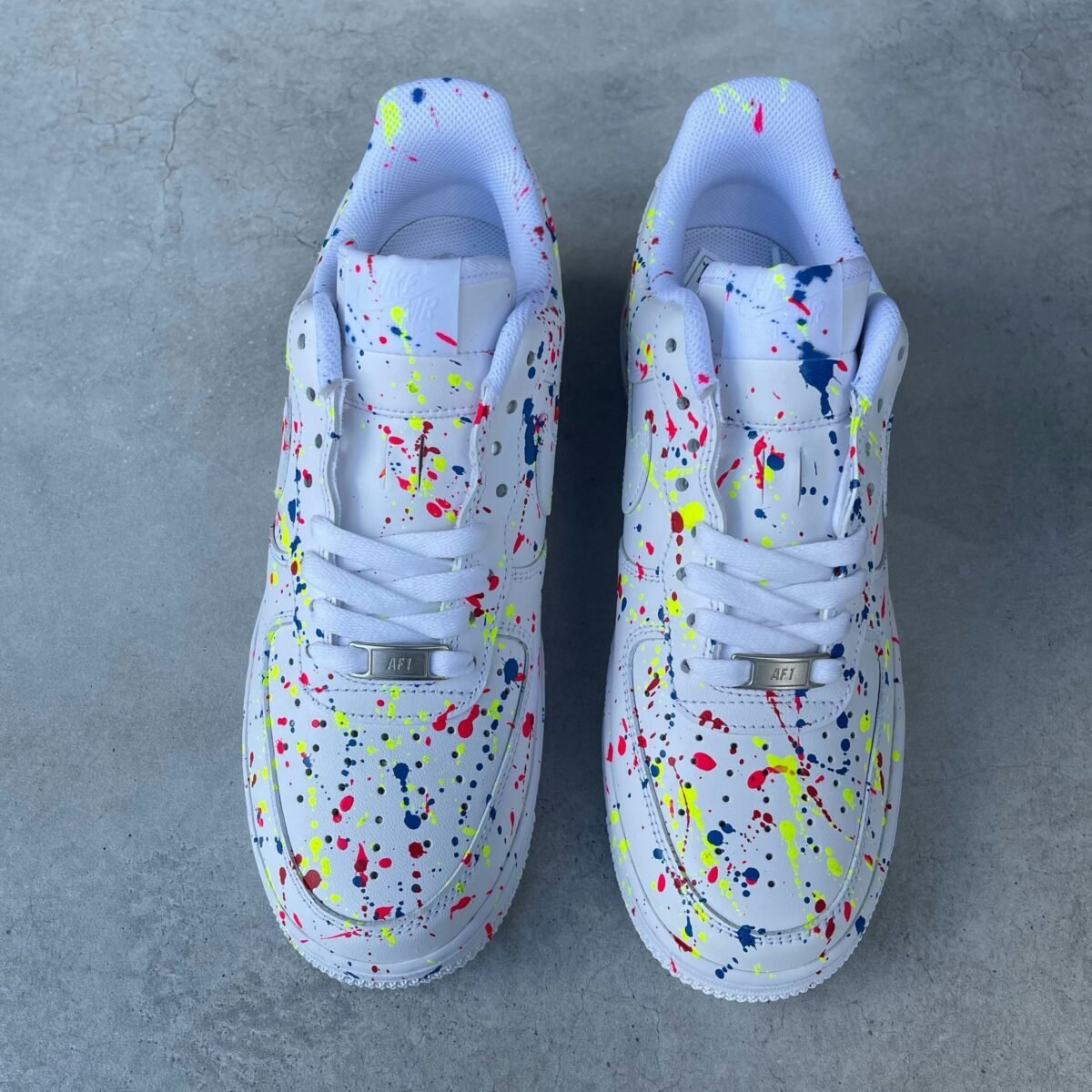 Custom AIR FORCE 1 – Splash (neon pink, neon yellow, red & blue)
