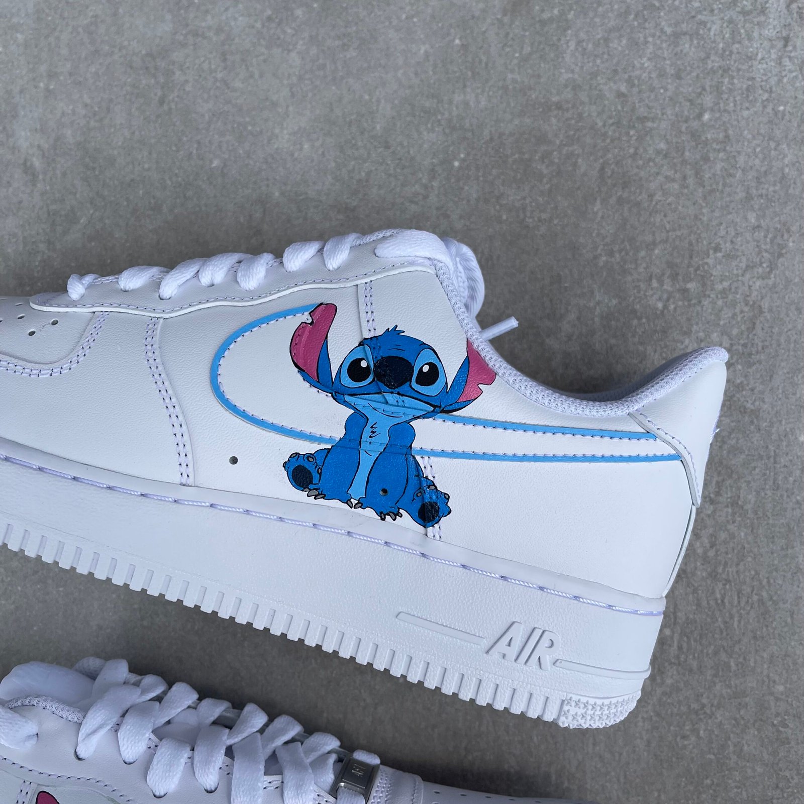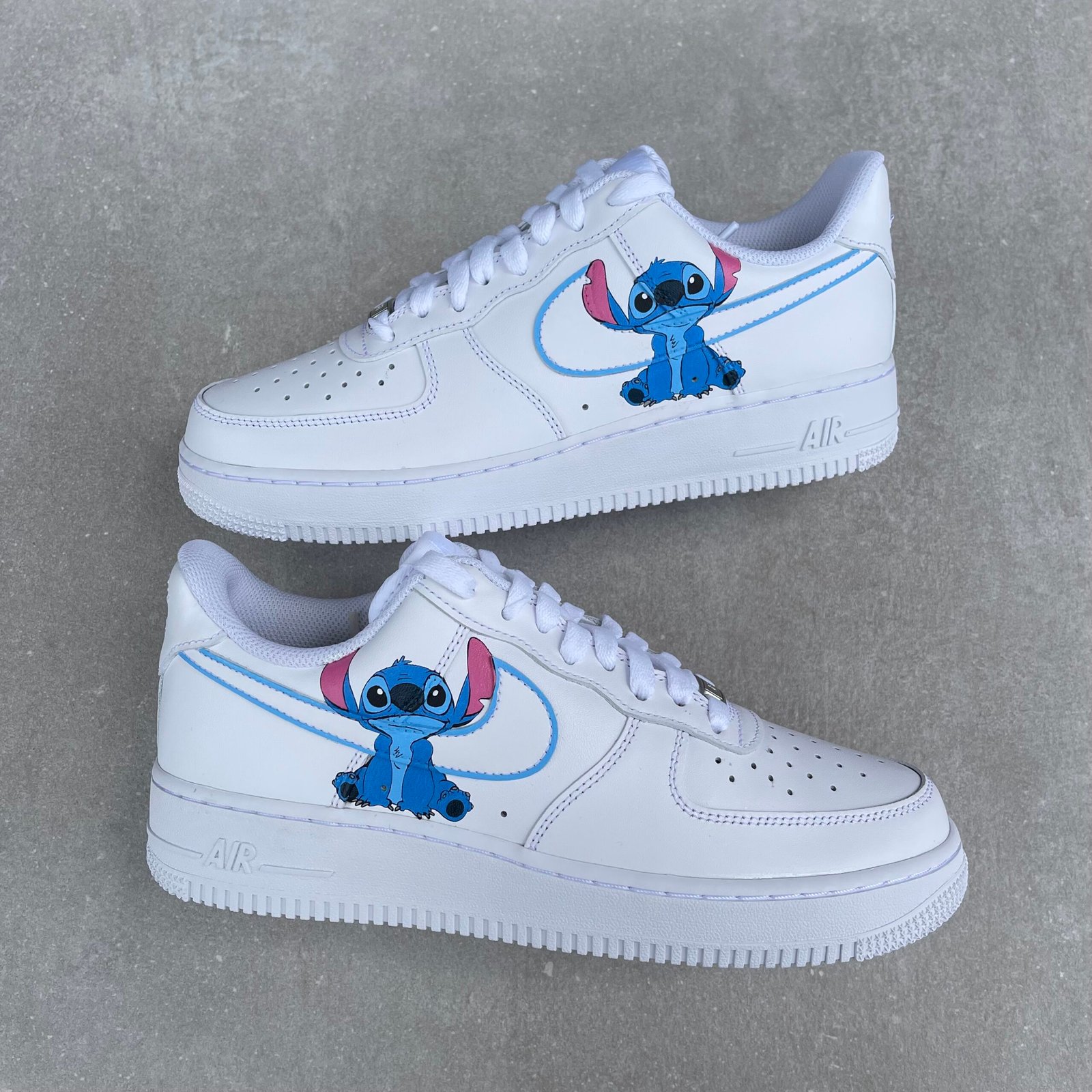 CUSTOM AIR FORCE 1 painted with Stitch from Lilo and Stitch. Painted with the best quality paint in the game. Scratch resistant and 100% waterproof