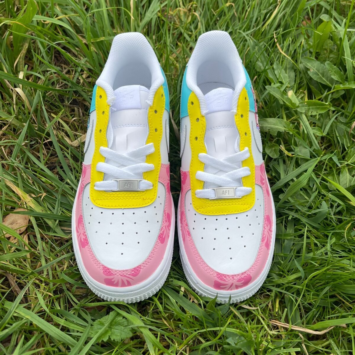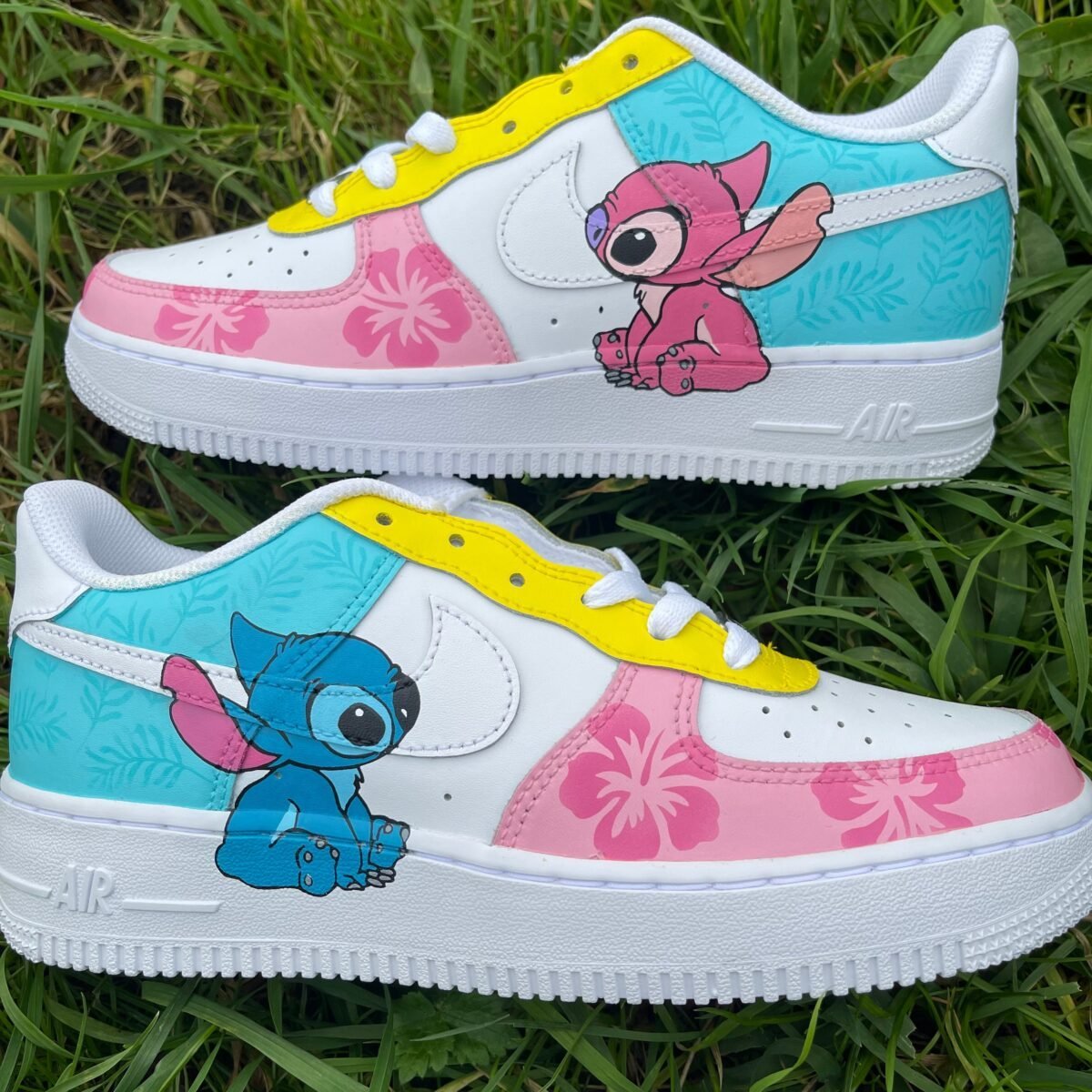 CUSTOM AIR FORCE 1 painted with Stitch and different colors around the whole shoe. Painted with the best quality paint in the game. Scratch resistant and 100% waterproof.