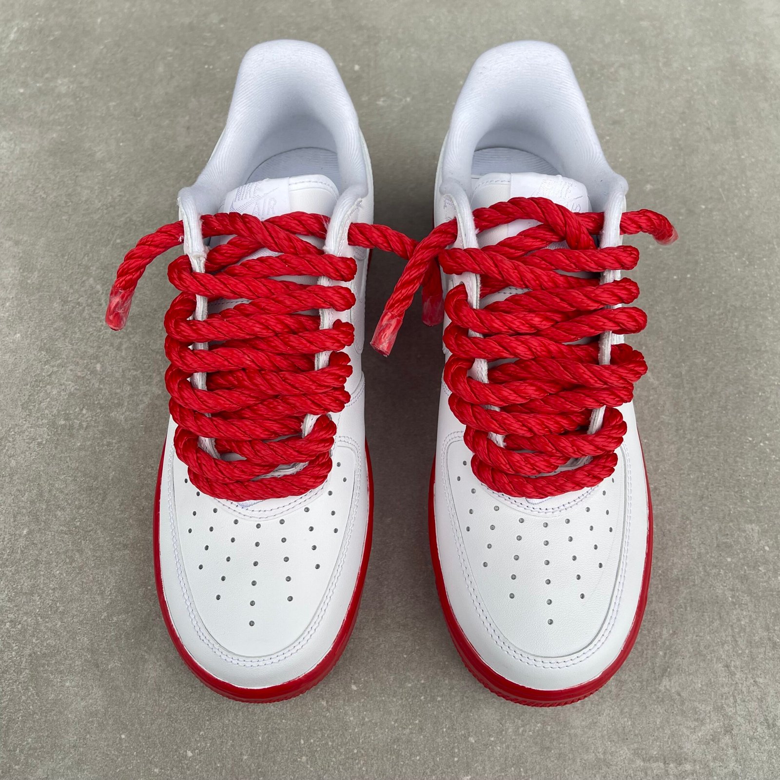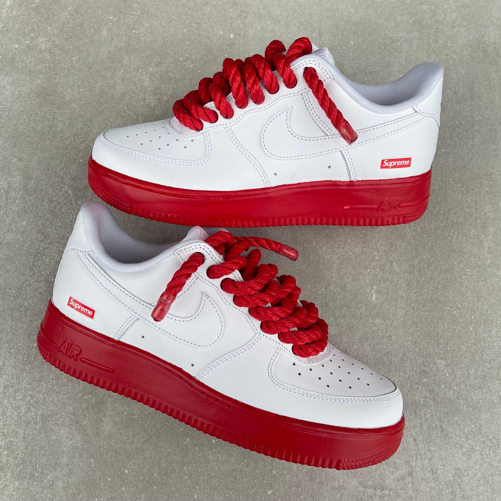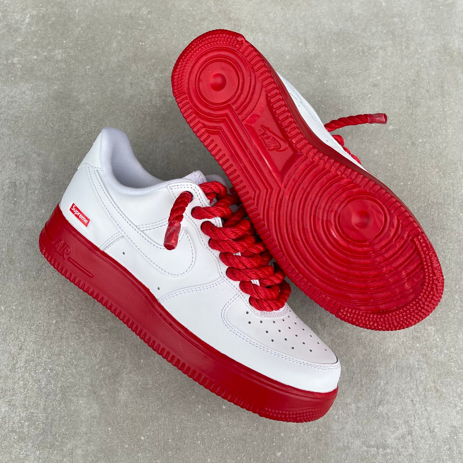 Custom AIR FORCE 1 Supreme – Red Rope laces / Rubber dipped soles