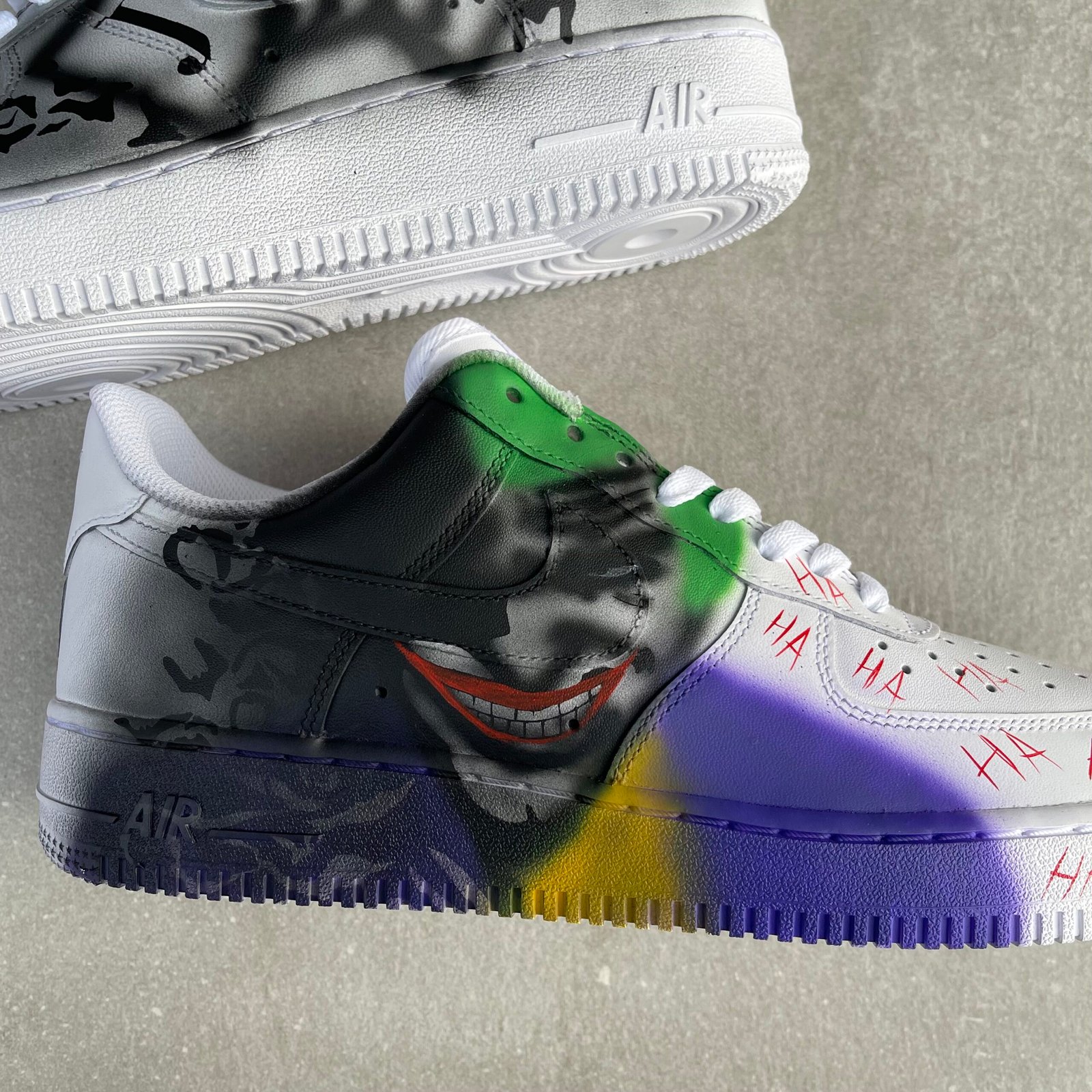 Custom AIR FORCE 1 airbrushed in the Joker style. Also available with only black painting.