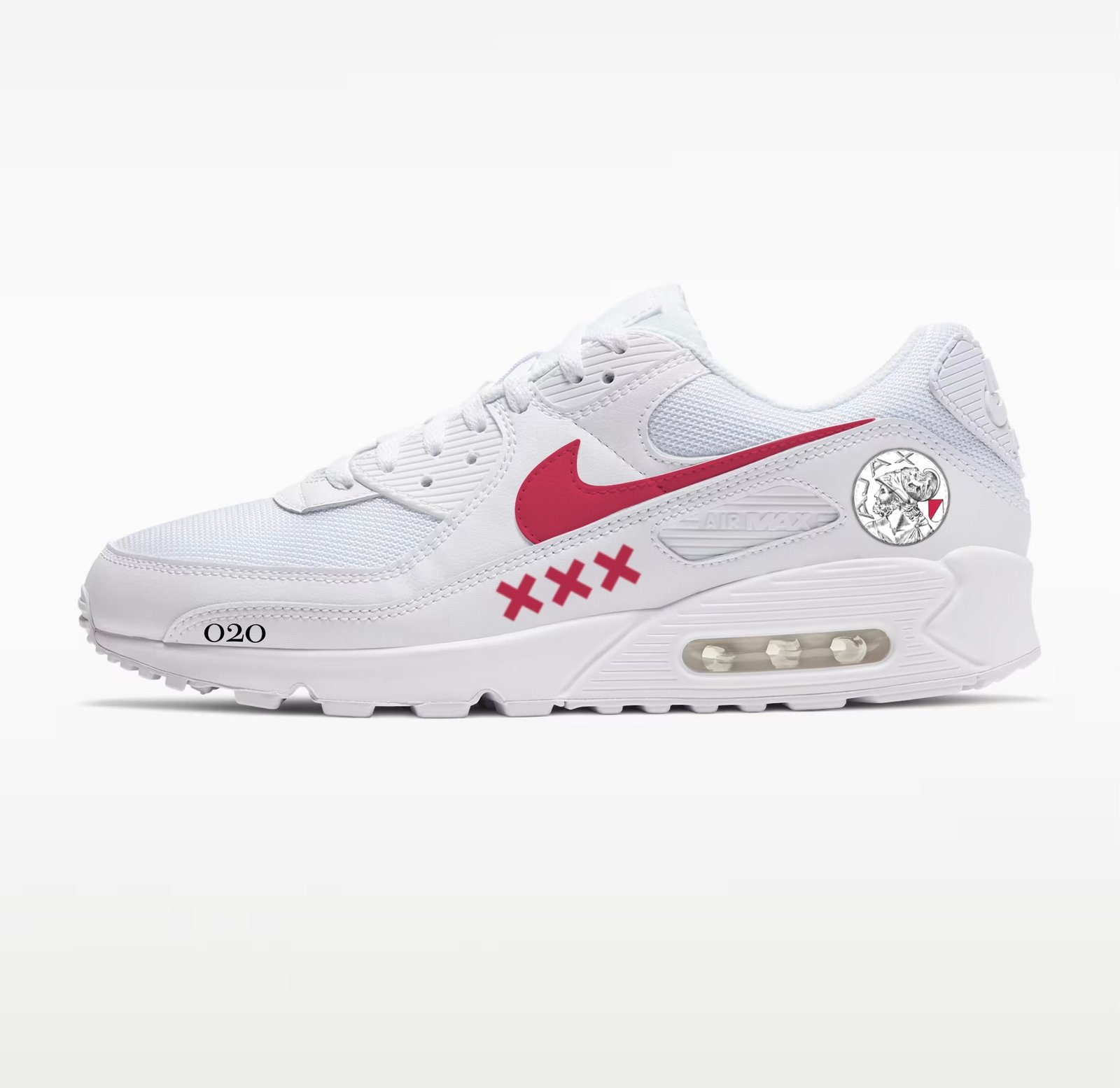 Custom Air Max 90 geïnspireerd door de Nederlandse voetbalclub, “Ajax Amsterdam”.