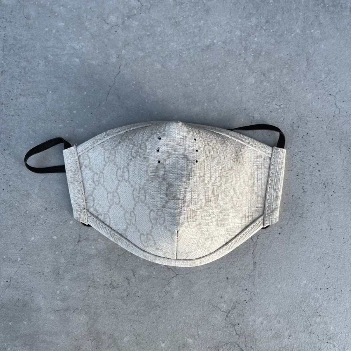 Custom hand made face masks, white Double G. Fits perfectly on every head. Adjustable on the back. Only 1 piece available.