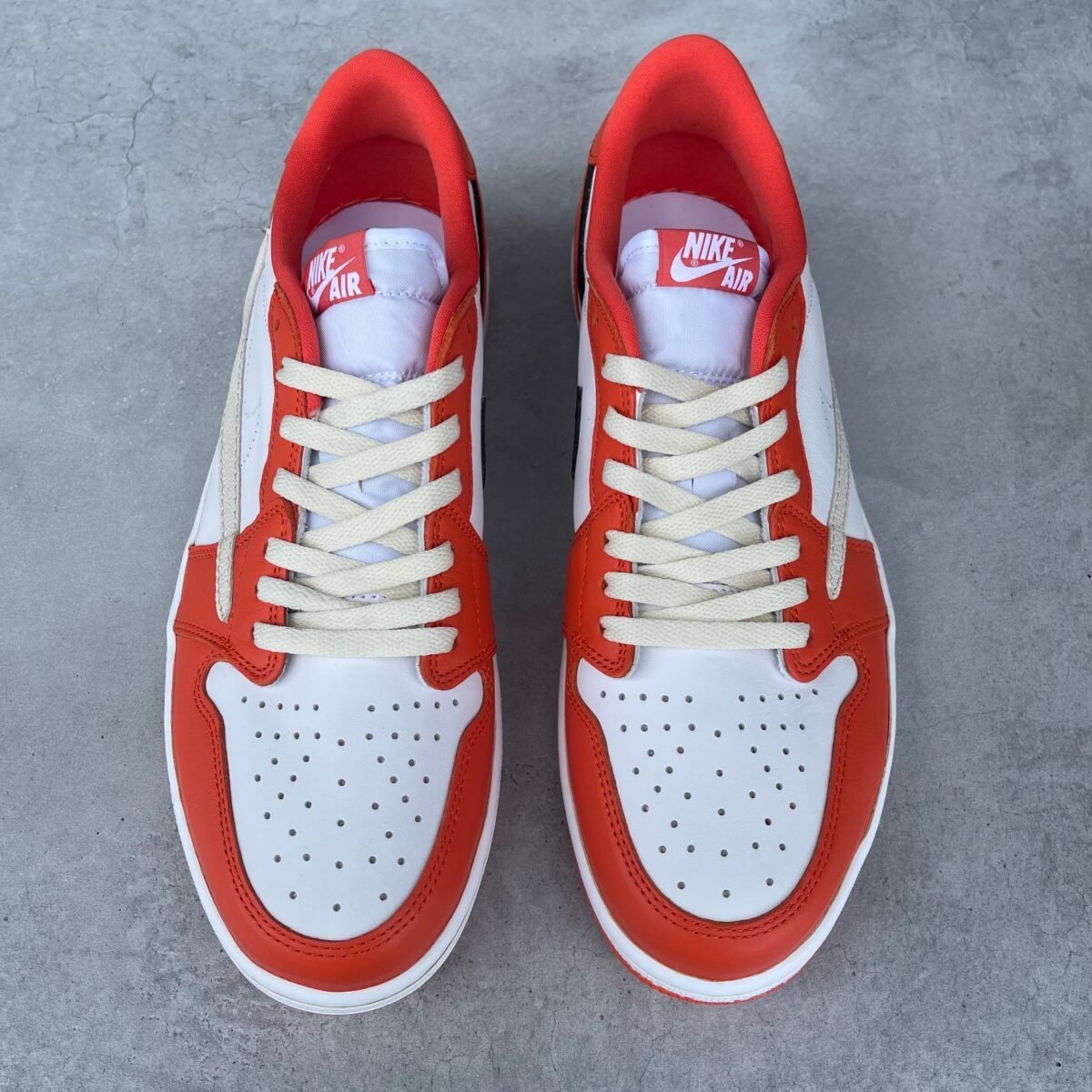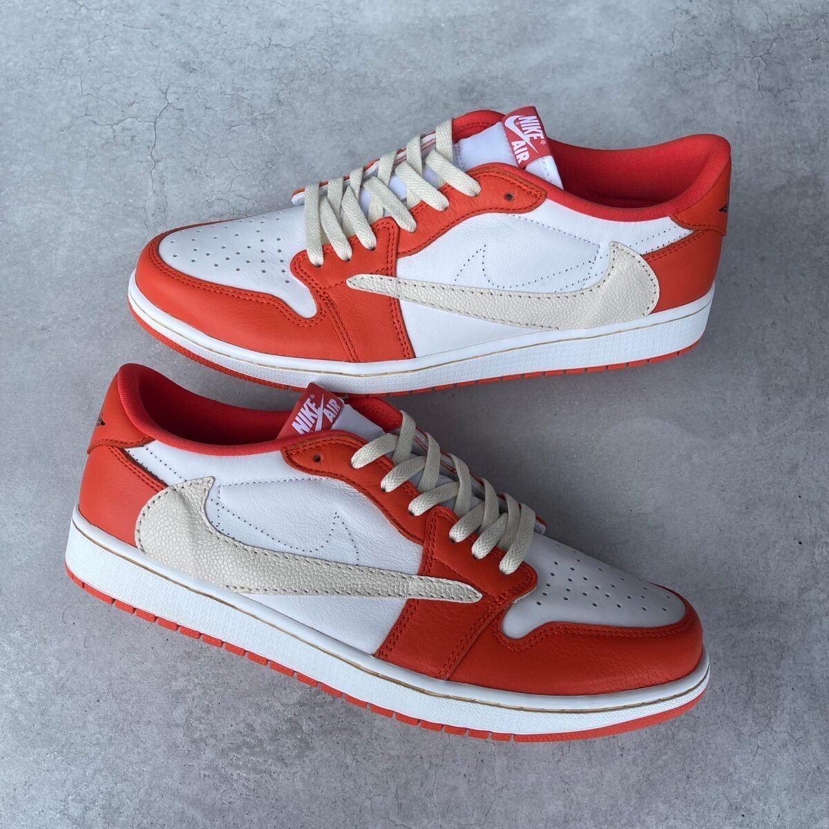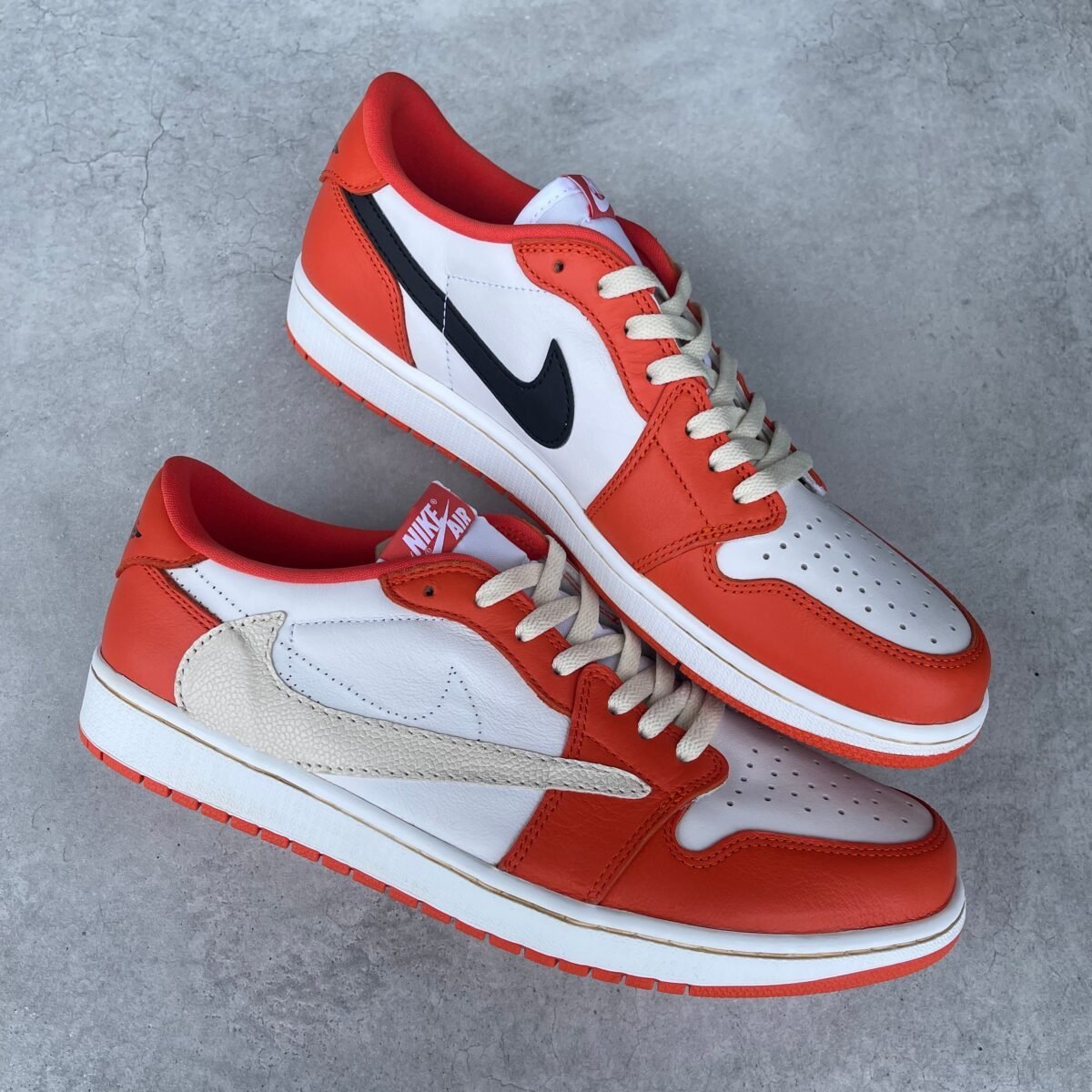 Custom Jordan 1 low starfish with the reverse swoosh added. The sole is vintaged.