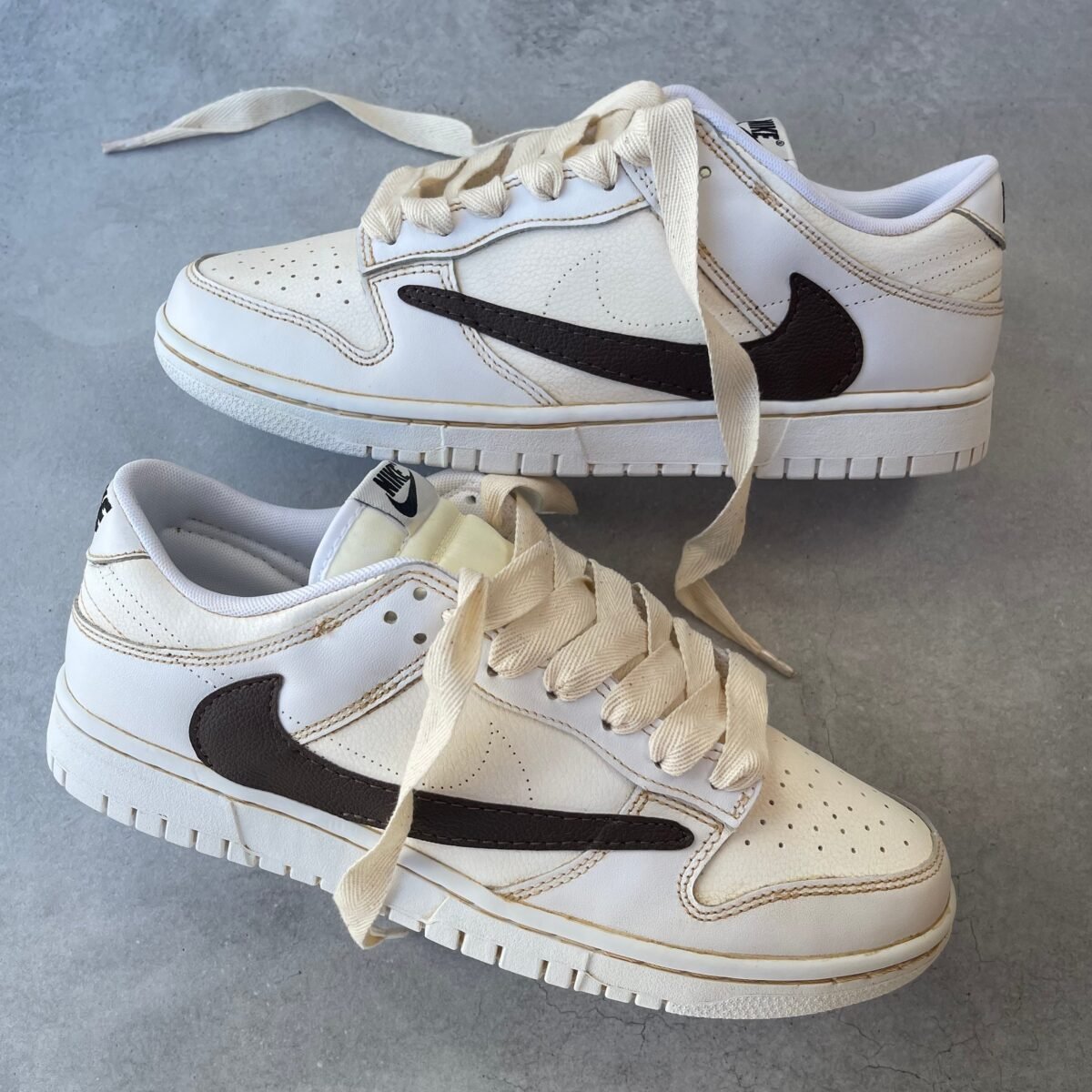 Custom Nike Dunk low – Reverse swoosh vintage (flat wide laces)