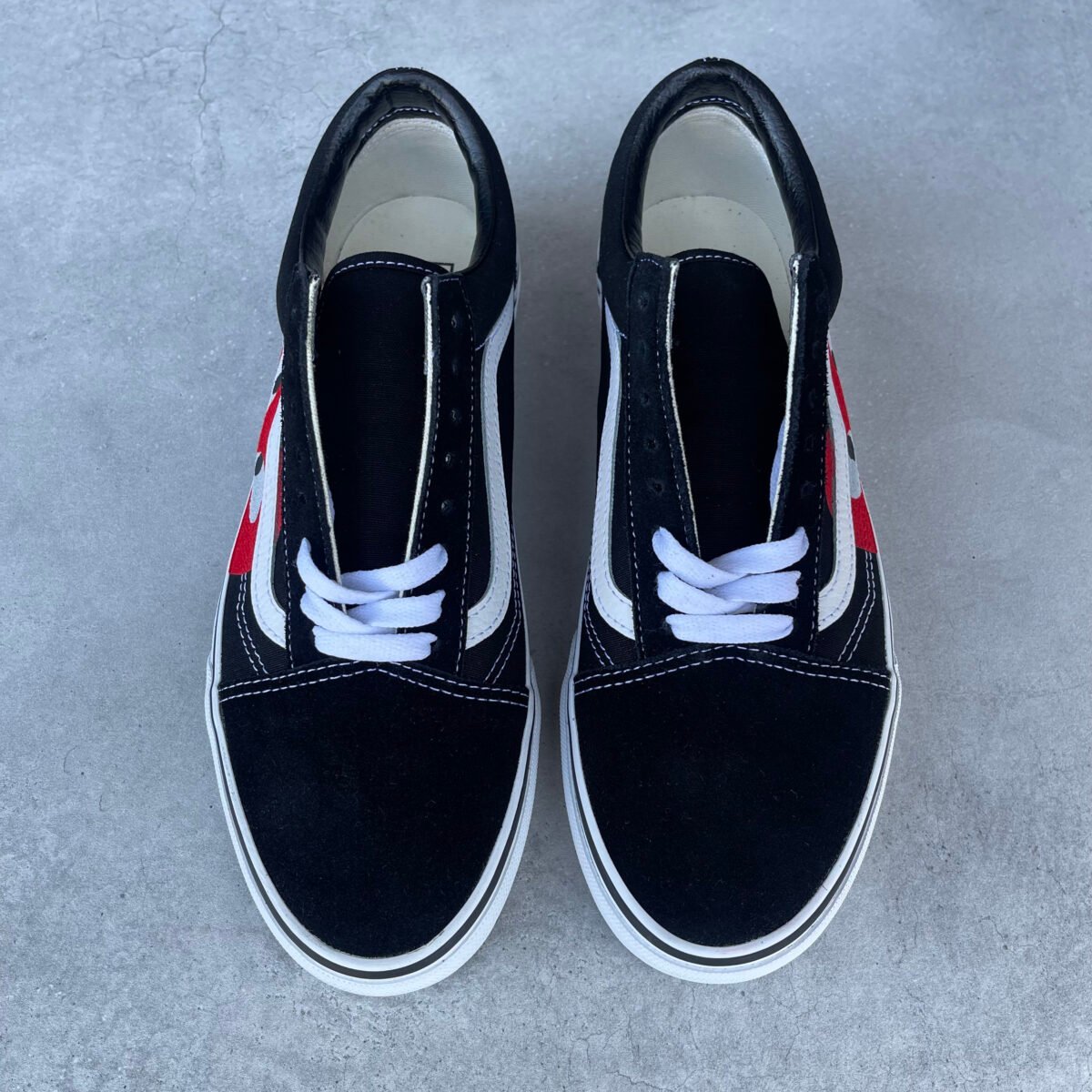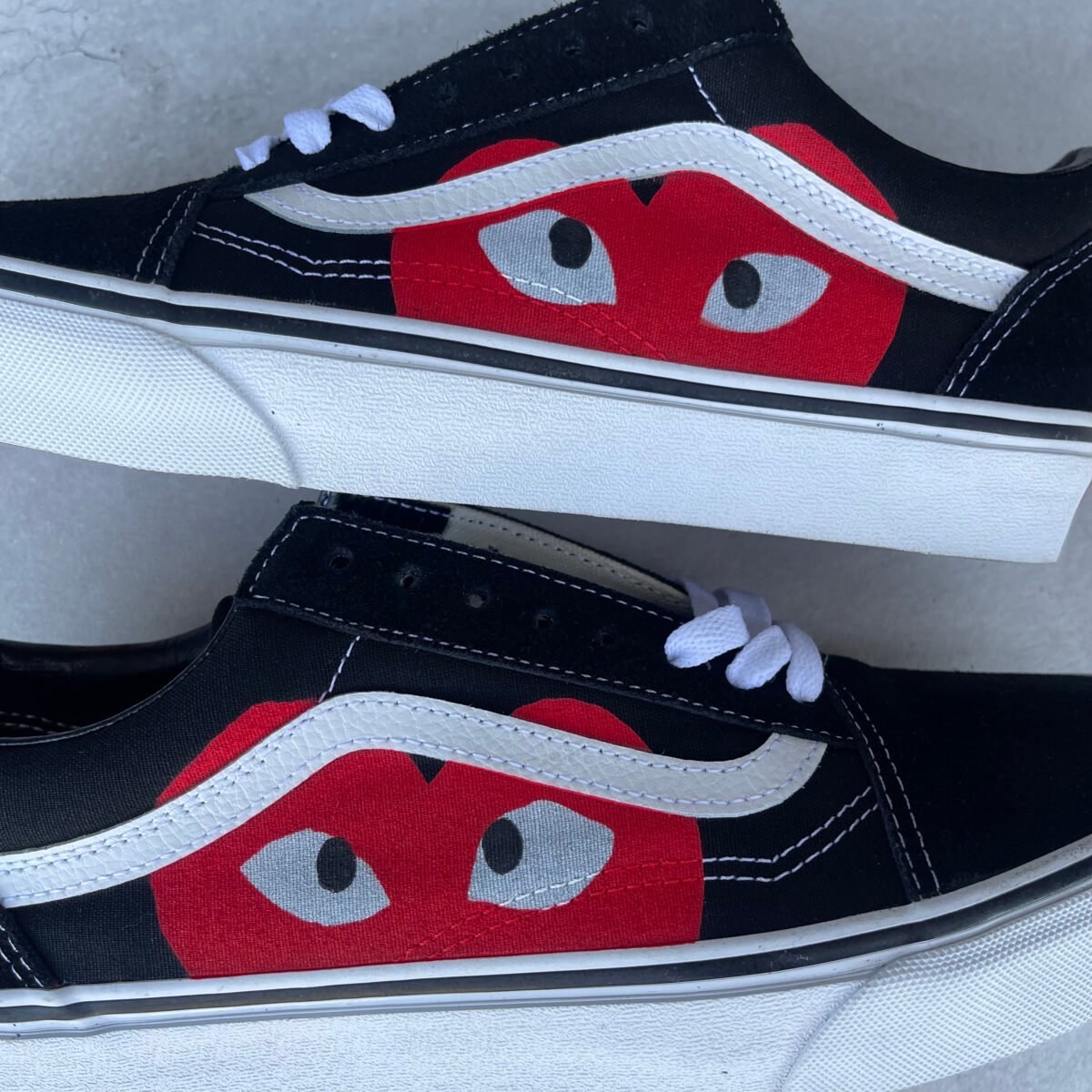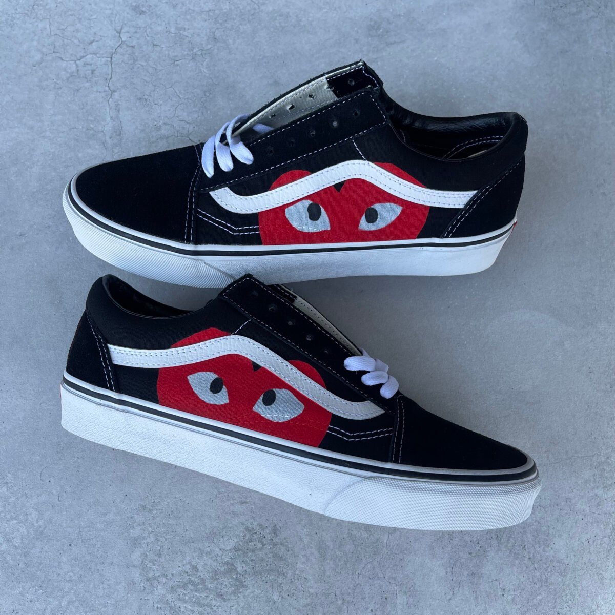 Custom Vans Old Skool big CDG heart. Painted with the best quality paint in the game. Scratch resistant and 100% waterproof