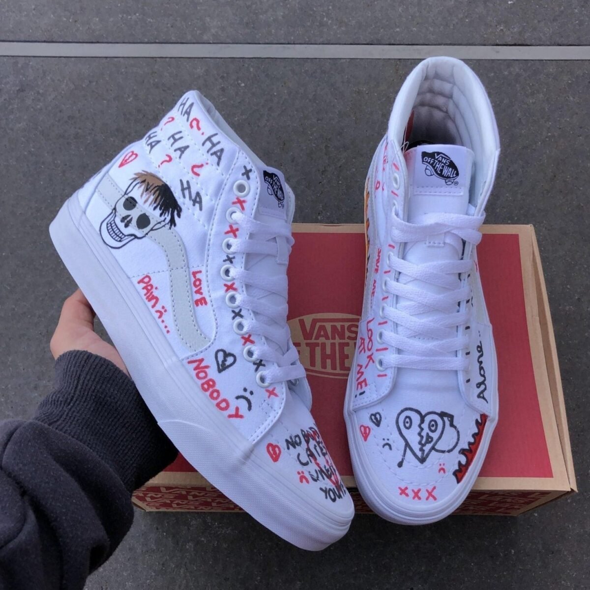 Custom Vans Sk8-hi white – XXXTentacion inspired