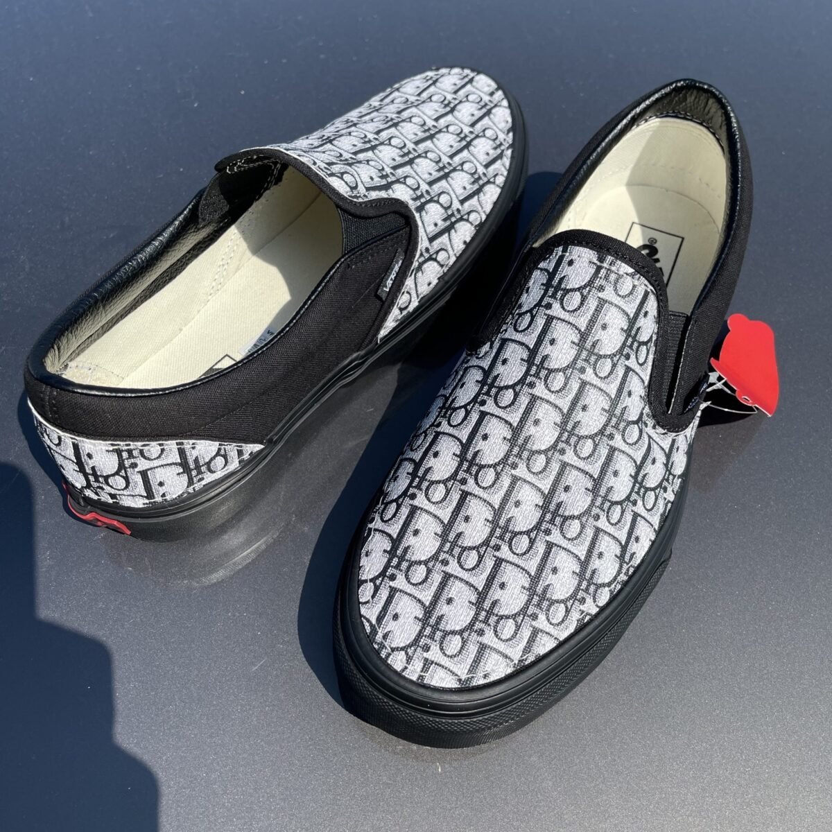 Custom Vans Slip-on black with Christian D leather. The leather is glued and sewn on.