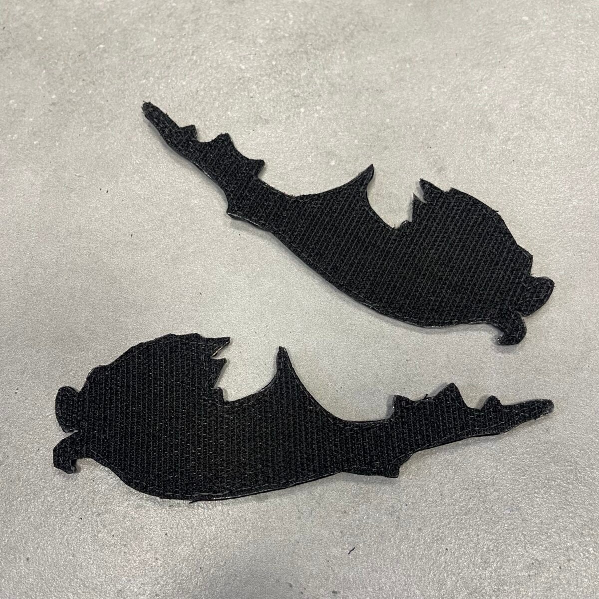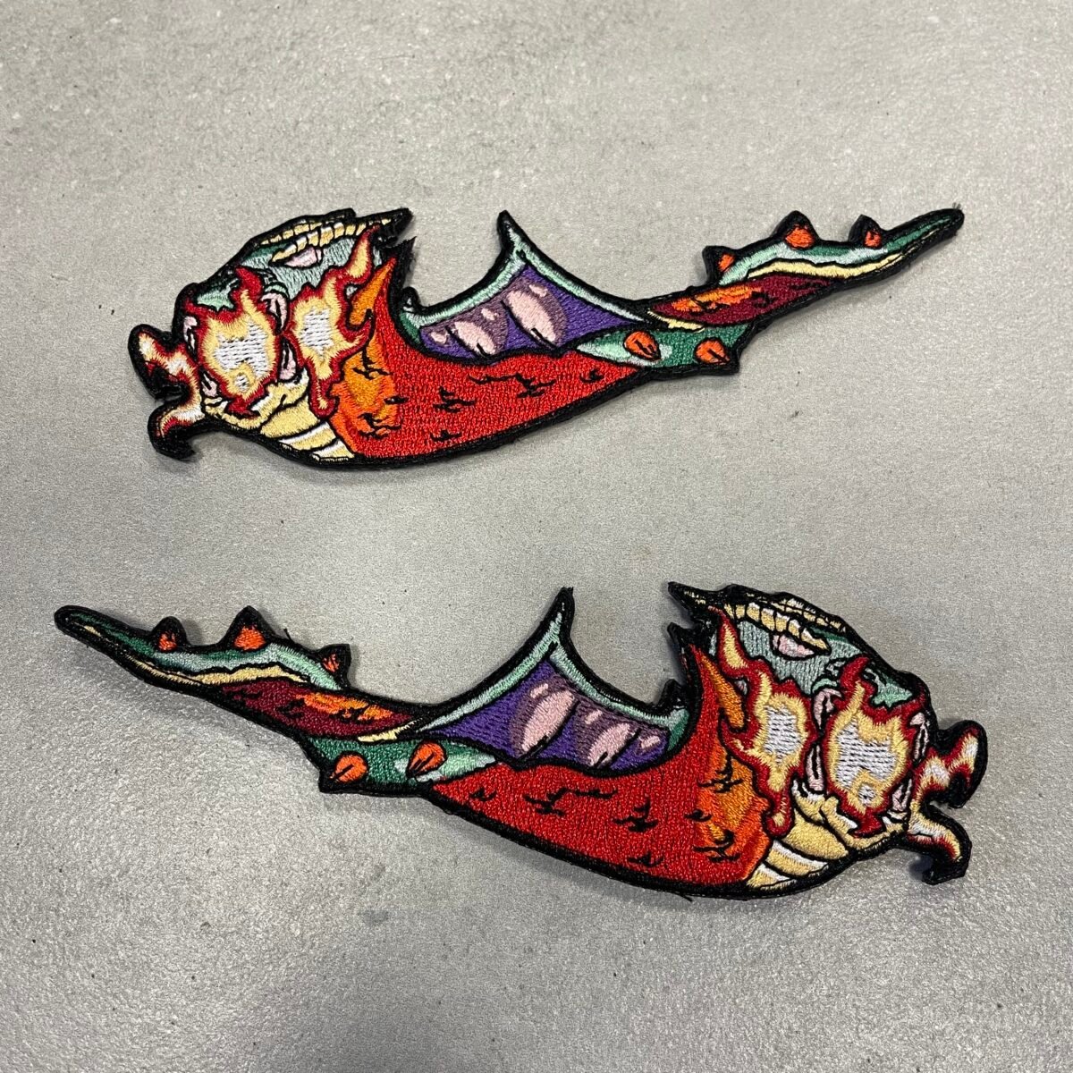 Hook and loop swoosh patch in a dragon design, designed by ourself.