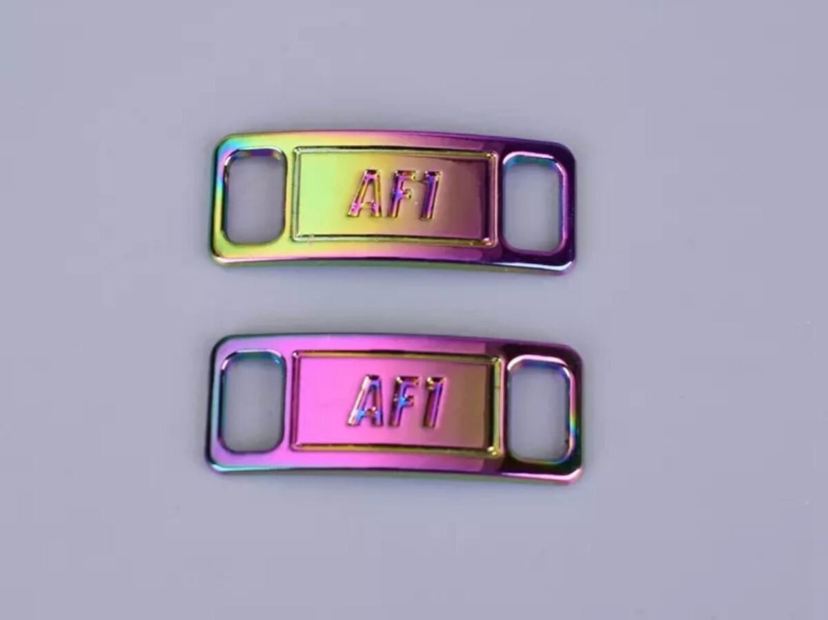 2 pieces of holographic shoelace buckles.