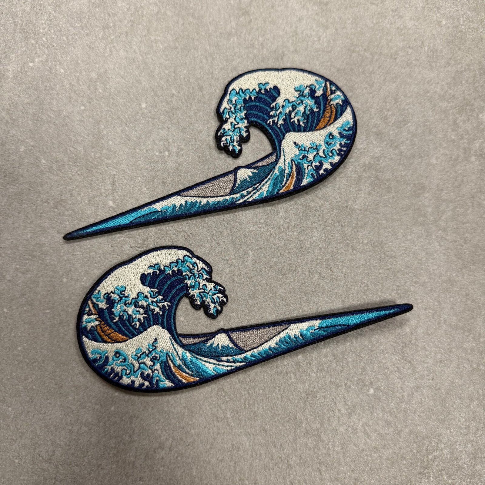 Custom made patch in the style of the Great wave of Kanagawa from Japan.