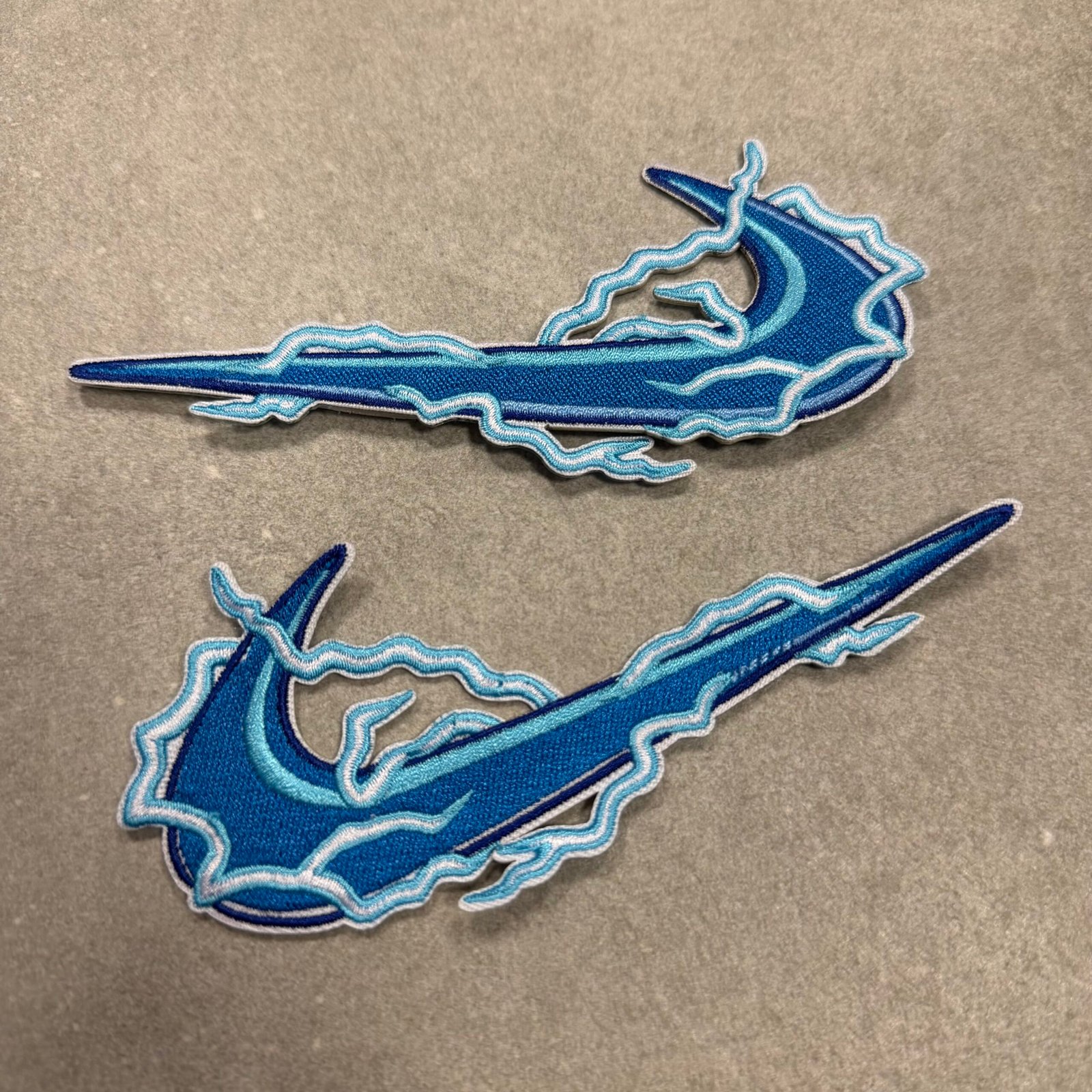 Custom made patch in style of a lightning swoosh
