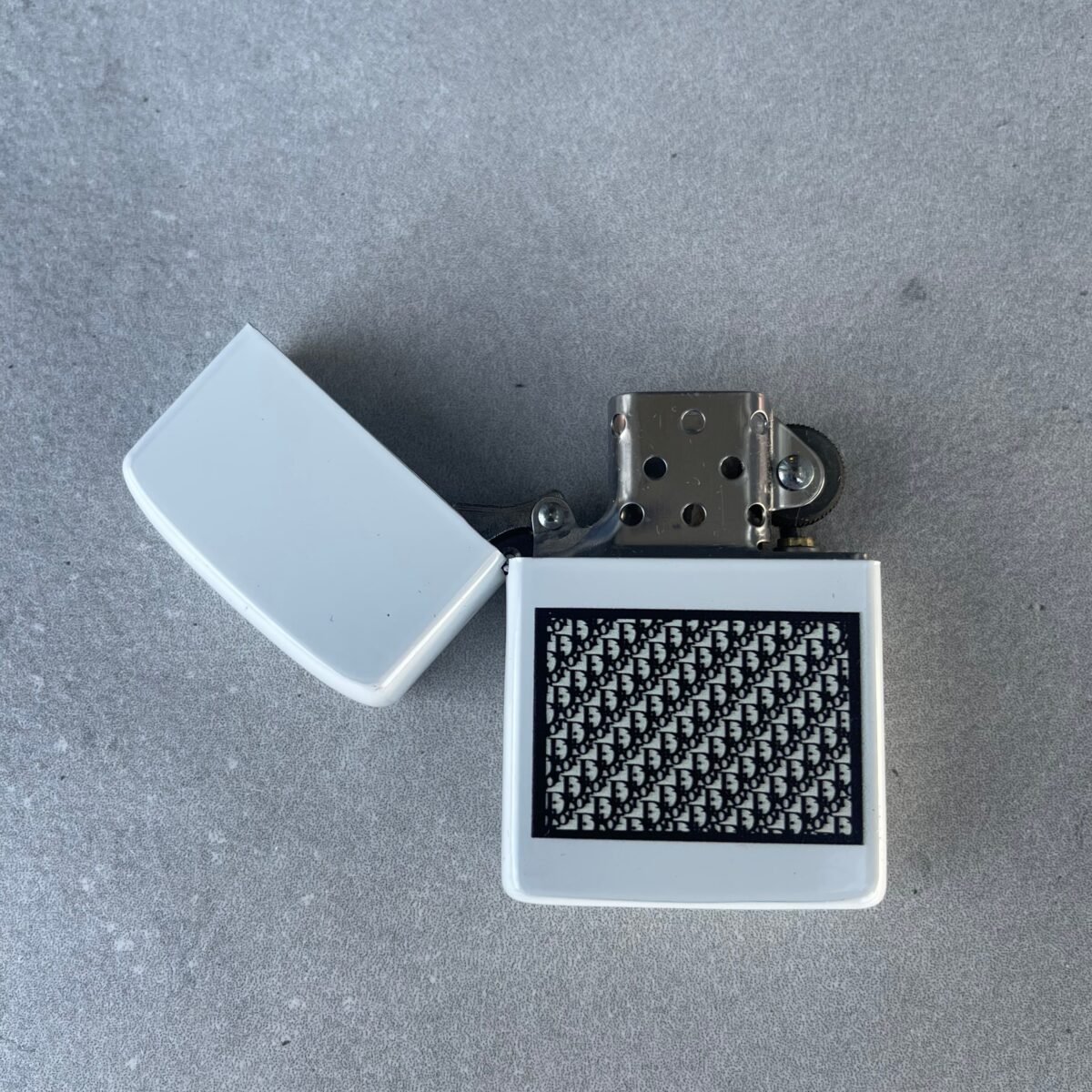 White Christian D lighter with black print, easy to fill with any lighter fluid. The pattern is printed on the lighter. This model wasn’t printed the way we wanted, so that’s why it has a low price.