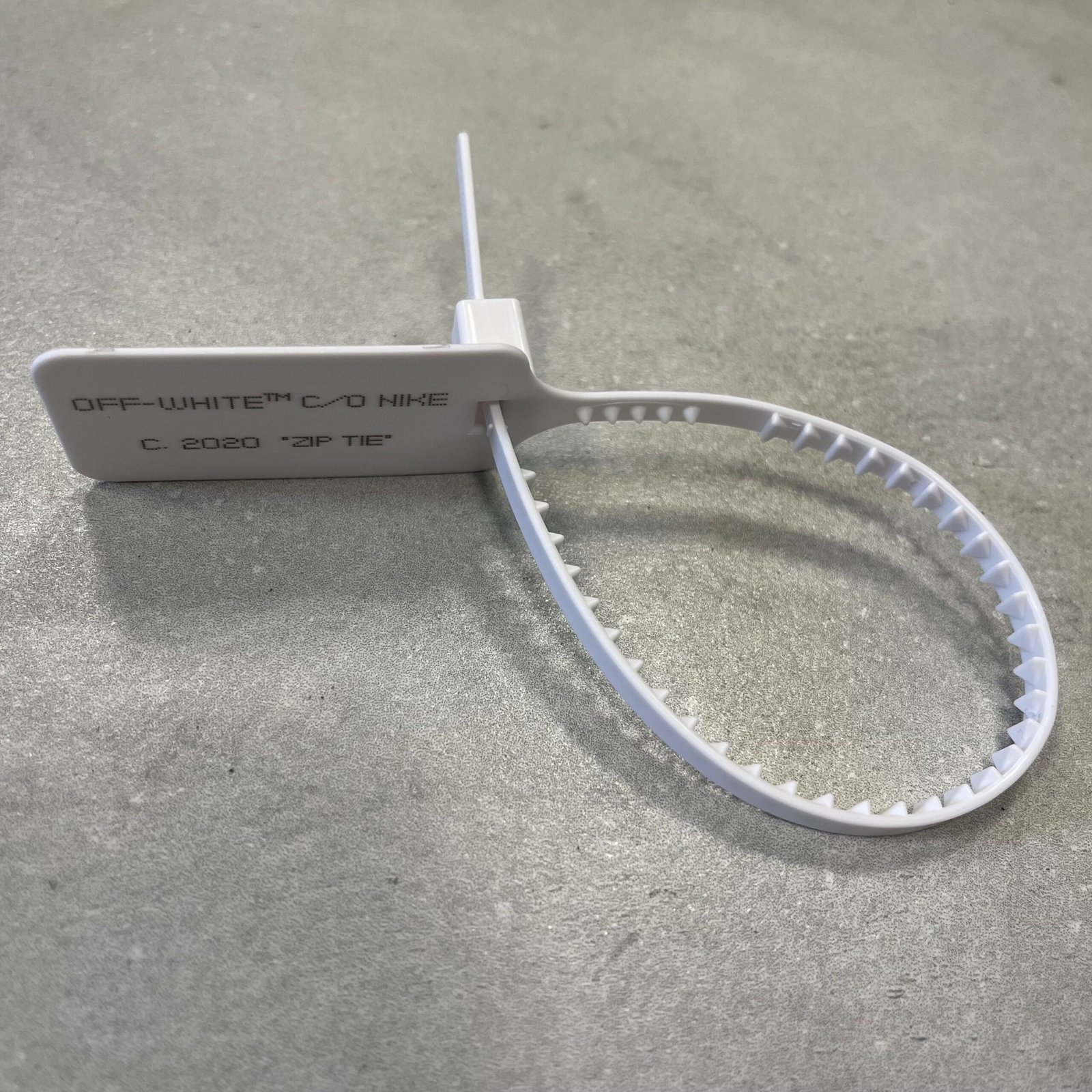 White OFF-WHITE zip tie, can be added to your sneakers.